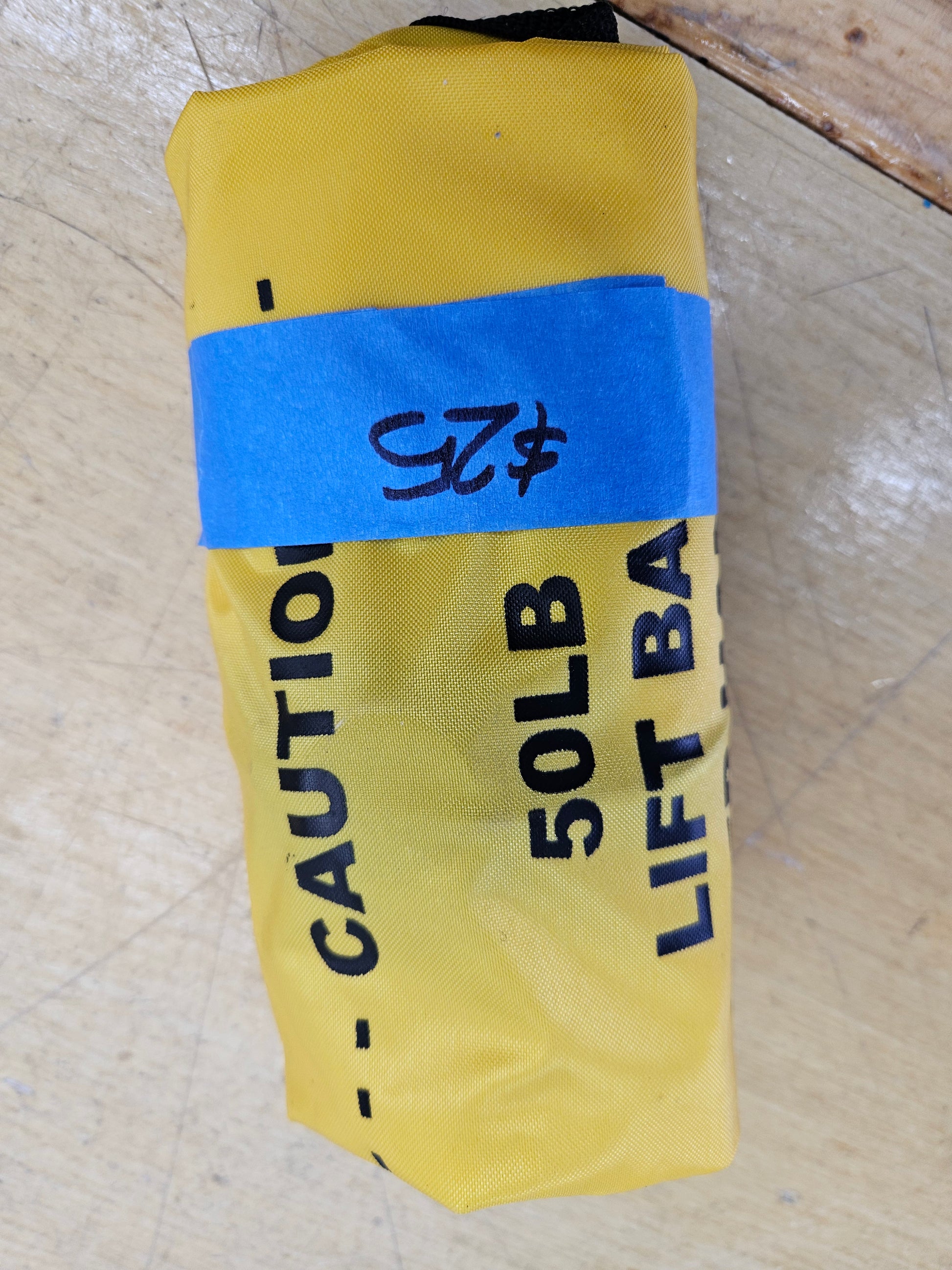 50lb lift bag, good condition, has pull dump valve in the top of the bag for venting.