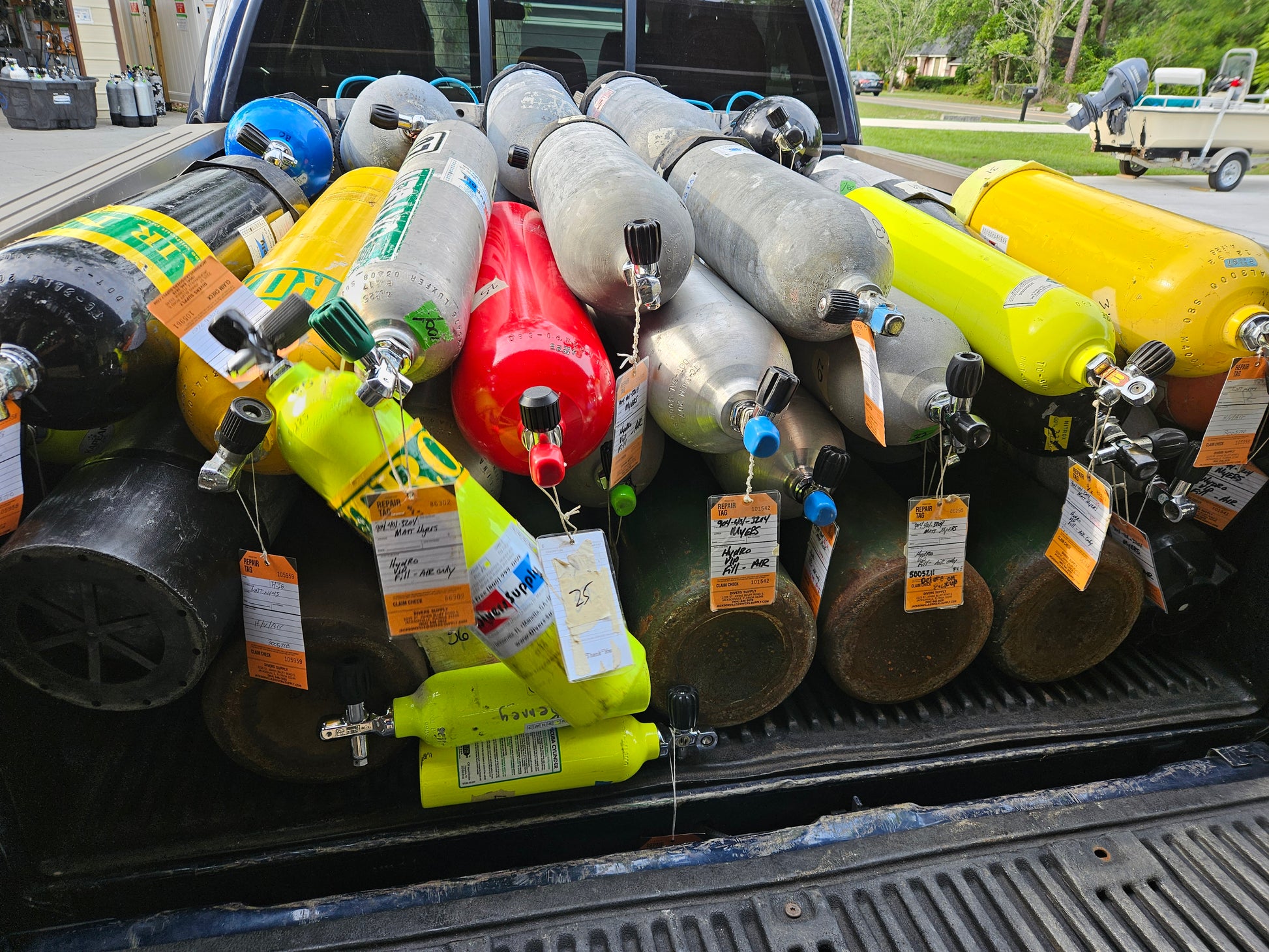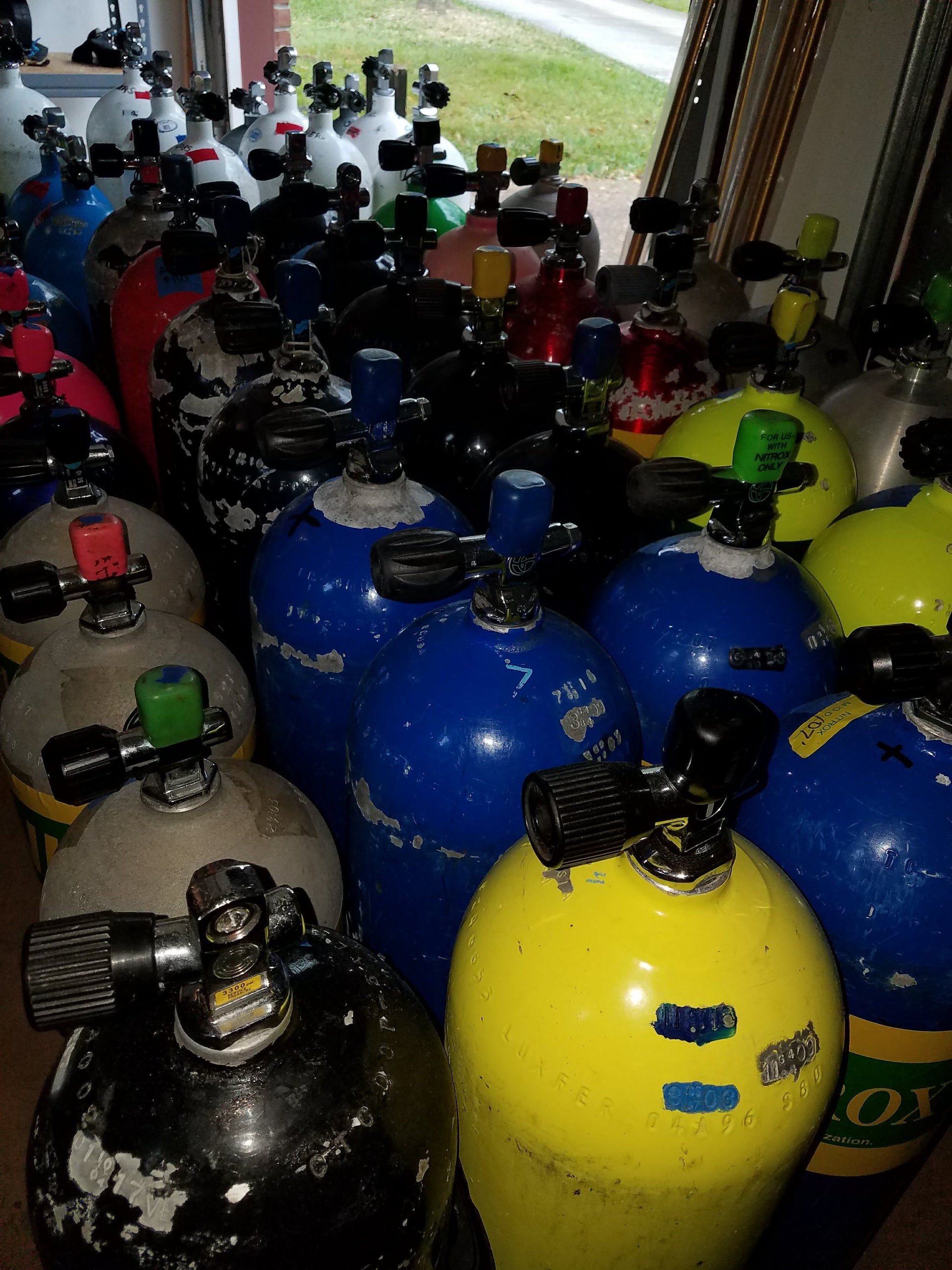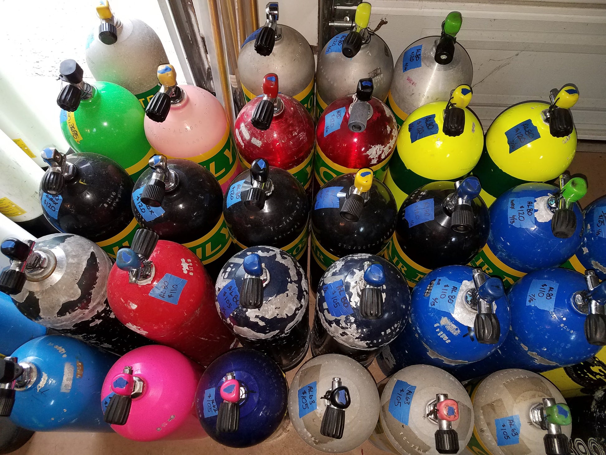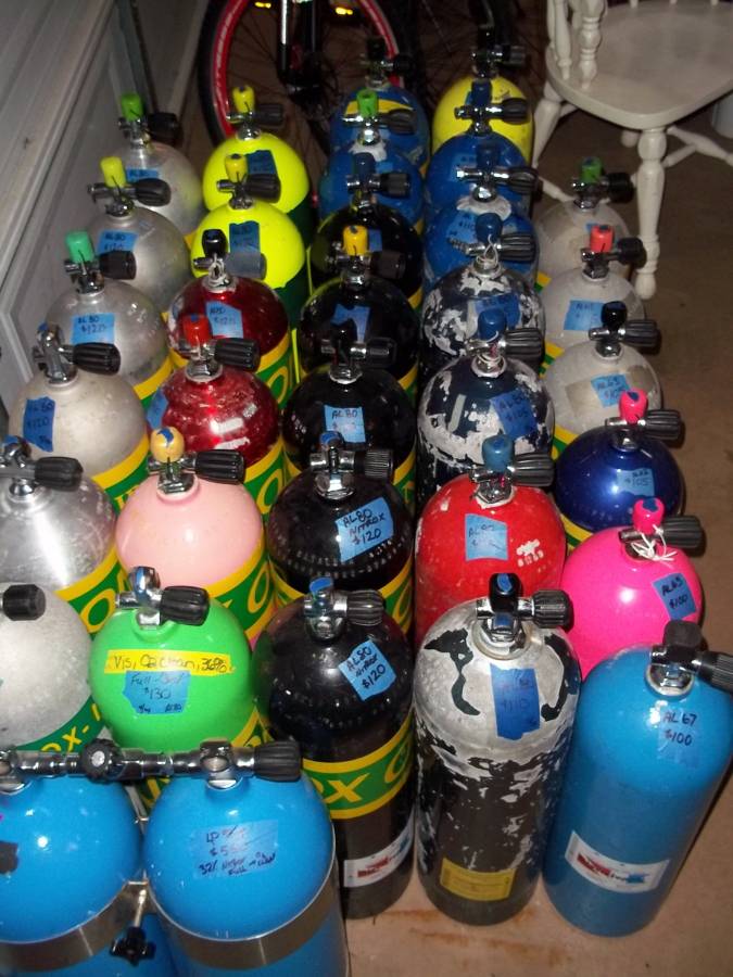 Aluminum 80 cubic foot cylinders... also AL63 and AL67's available. All cylinders are current on hydro (most of them within the last 6 months, some older, no guarantee on which you will get... freshest hydro cylinders will be sold first, unless you've previously selected a specific cylinder and spoke to the shop), VIP and if you're picking up locally will be filled on pickup. All with standard yoke valves. New din/pro valves available if you'd like to upgrade contact the shop to do so, upgraded valve is $45 for a Blue Steel pro valve.