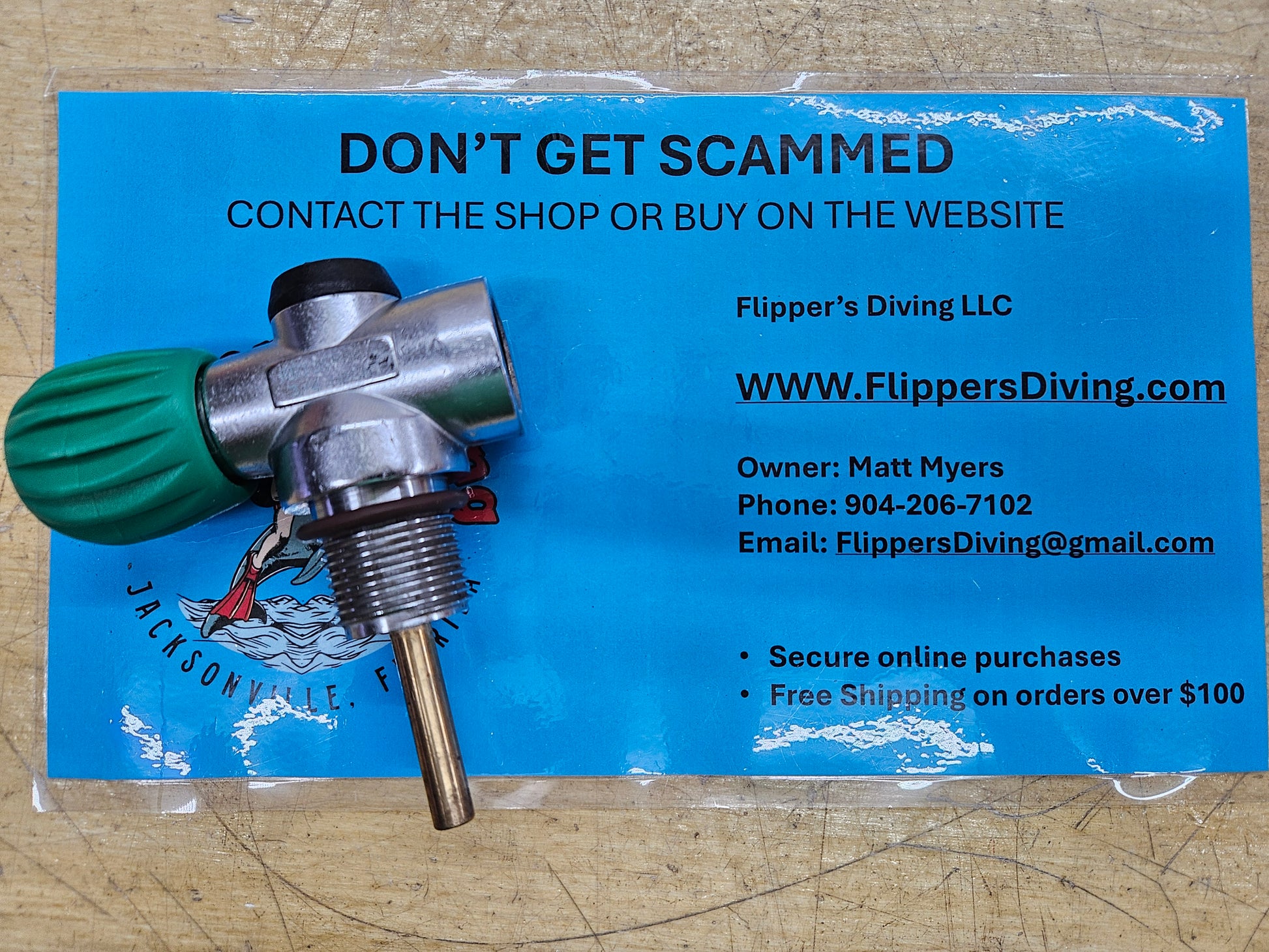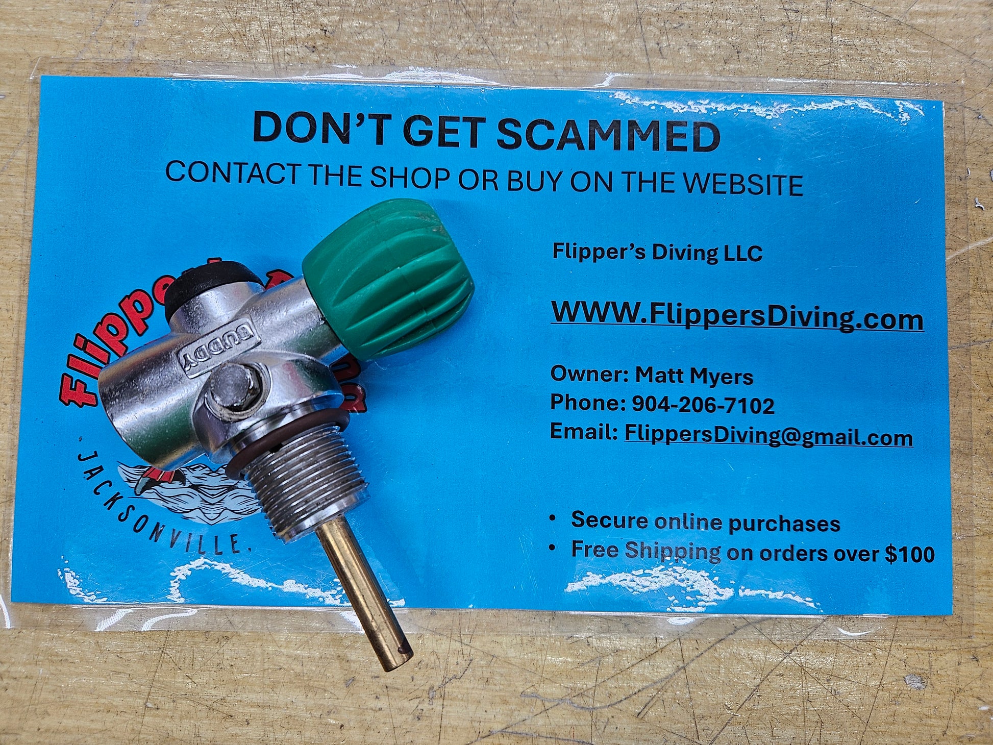 Buddy inline cylinder valve. NEEDS TO BE REBUILT. It will not work in current state as the HP seat is damaged. All other parts included and appear to be in very good shape.