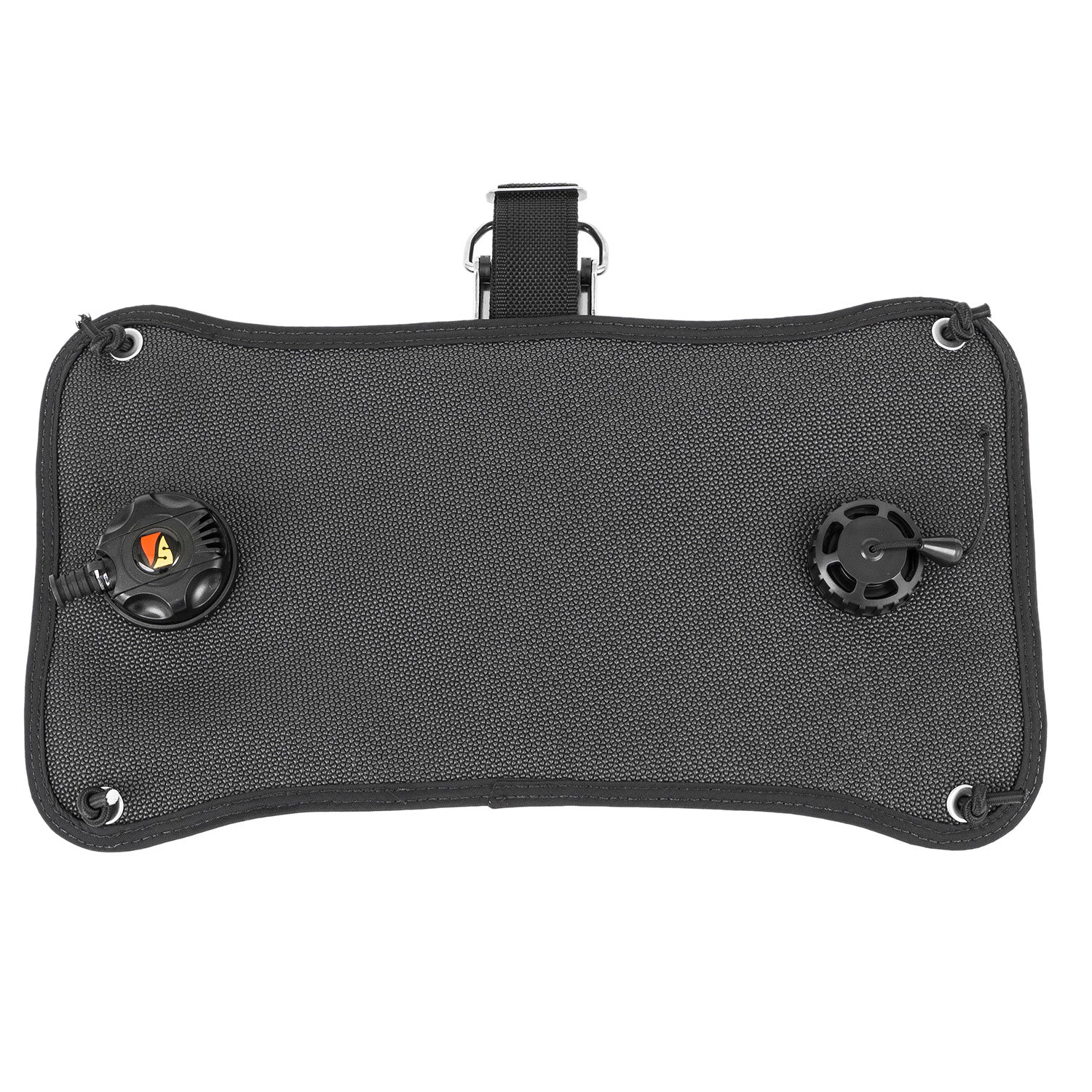 Dive Rite’s No Mount Tank BC was designed for environments where traditional BCs are impractical. It provides added buoyancy for heavy steel cylinders or other equipment, attaching via a 1.5-inch cam strap and two adjustable bungee straps. Made from a SuperFabric outer shell and 420 denier laminated inner bladder, the BC is oriented with the inflation valve near the cylinder neck and the exhaust valve at the lower end for optimal attachment. Designed for extreme cave diving, it requires specific training and equipment for no-mount use. BC inflator hose not included. Made in the USA.