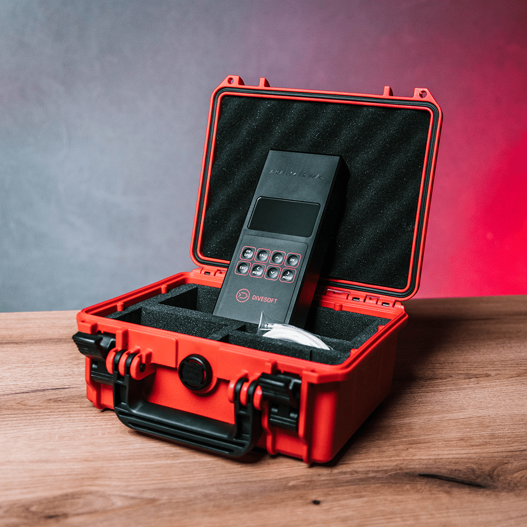 Professional Set Blender Basic was compiled for divers and mainly for filling stations, which prepare Nitrox and Trimix and which want to have analyzer stored in the supplied waterproof Divesoft transport case.