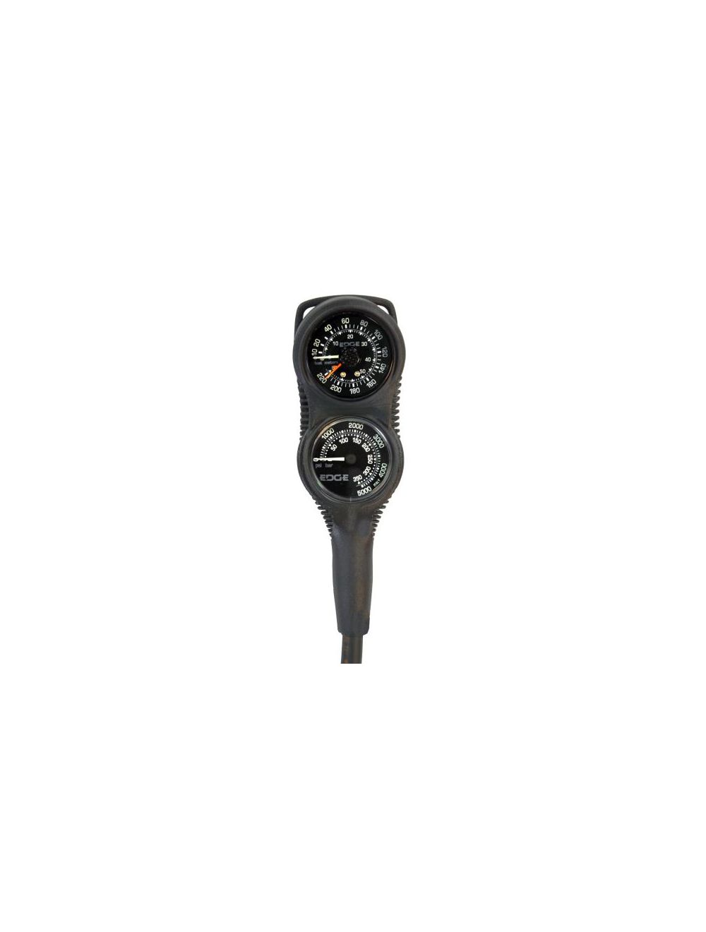 This Global instrument has imperial measurements on the outer dial and metric measurements on the inner dial. A Compact 2 gauge Global Console built small and compact for less drag and weight in a streamlined rubber shock-resistant boot. The display is crisp easy to read numbers for tank pressure and depth, 5000 (PSI) and 350 Bar for Tank pressure and 220 feet, and 67 meters for depth gauge with a built in maximum depth indicator.