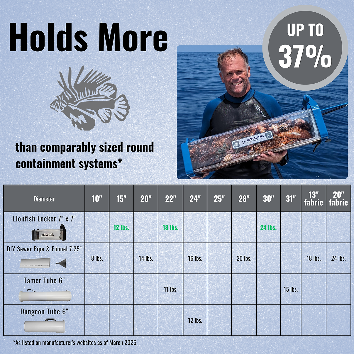 - Two lionfish lockers can be fastened together for derbies/commercial use