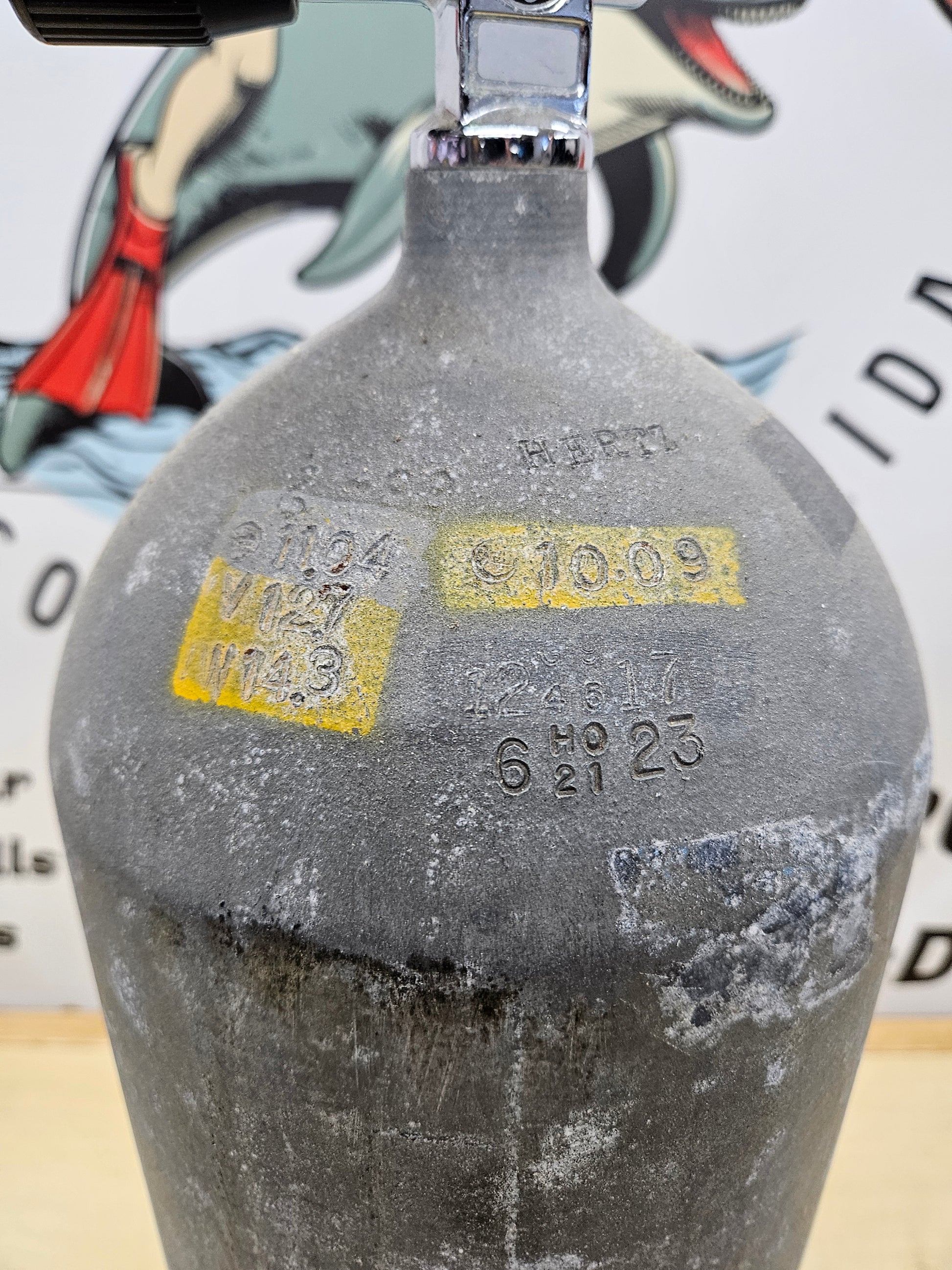 Pressed Steel (PST) HP100, galvanized finish, 300 bar DIN valve, 3500psi fill pressure. This cylinder was originally distributed by Aqualung but was manufactured by Pressed Steel. This is a DIN only valve and cylinder. The valve will not accept a DIN insert for Yoke regulators nor can the cylinder accomodate a standard 3/4" valve. Cylinder was manufactured in 1994 and had most recent hydro 06/2023. Cylinder just had VIP and 02 cleaning and is ready for a dive. Free fill of air or 32% if picking up locally. Shipping available but cylinder will be drained and valve removed/capped.