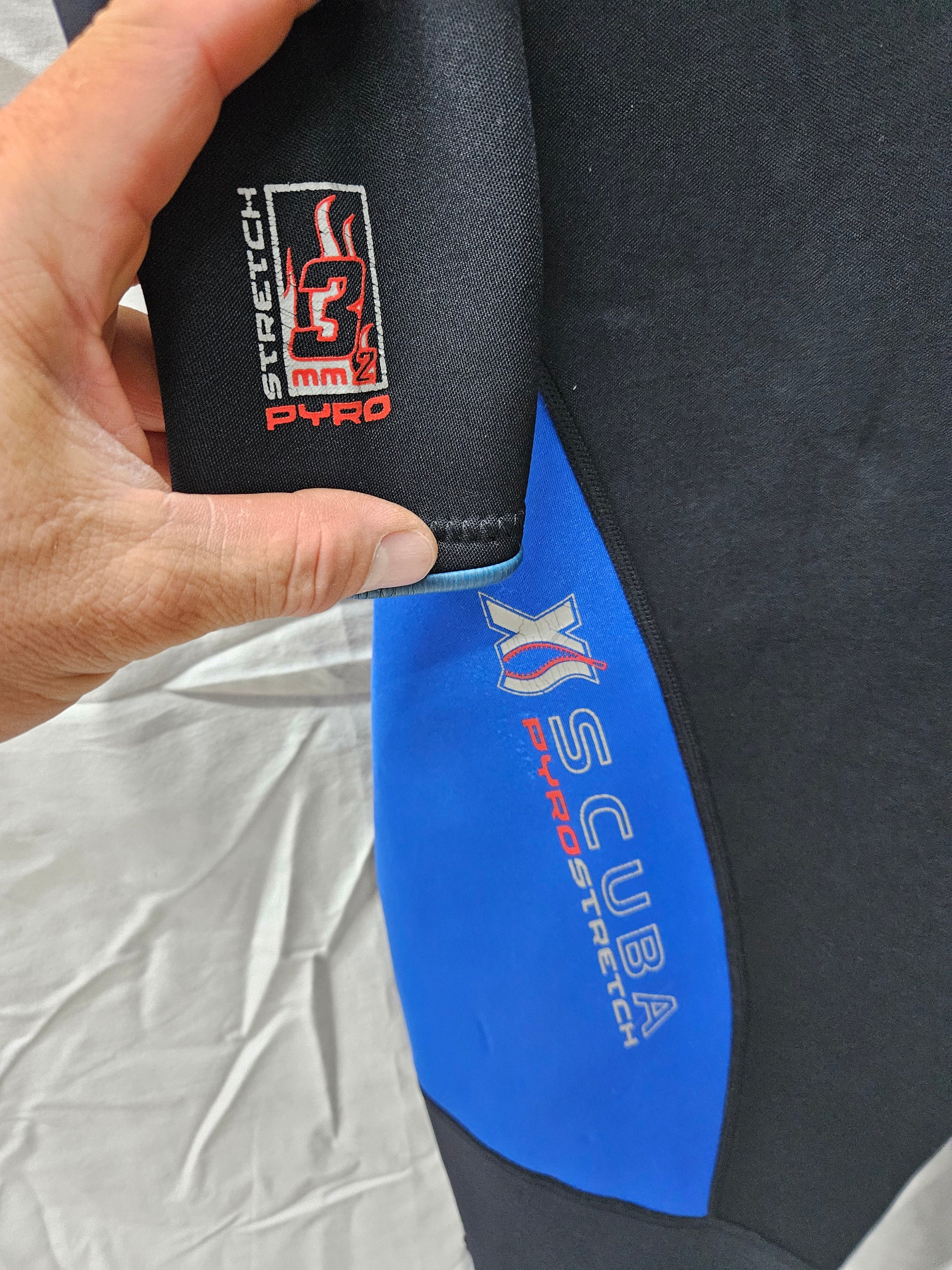 "Pyro Stretch" by XS Scuba, 3/2mm full wetsuit. Overall good condition, no tears/rips or major wear. size 12.