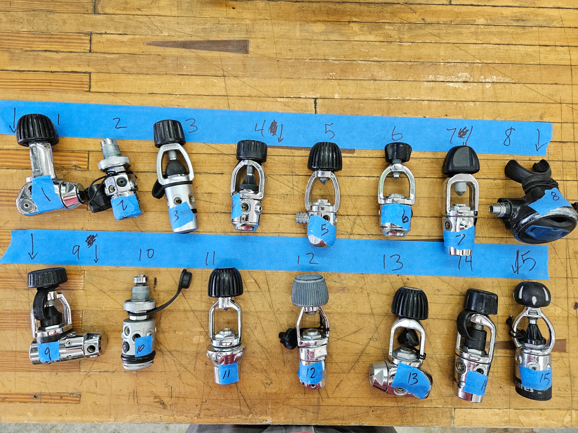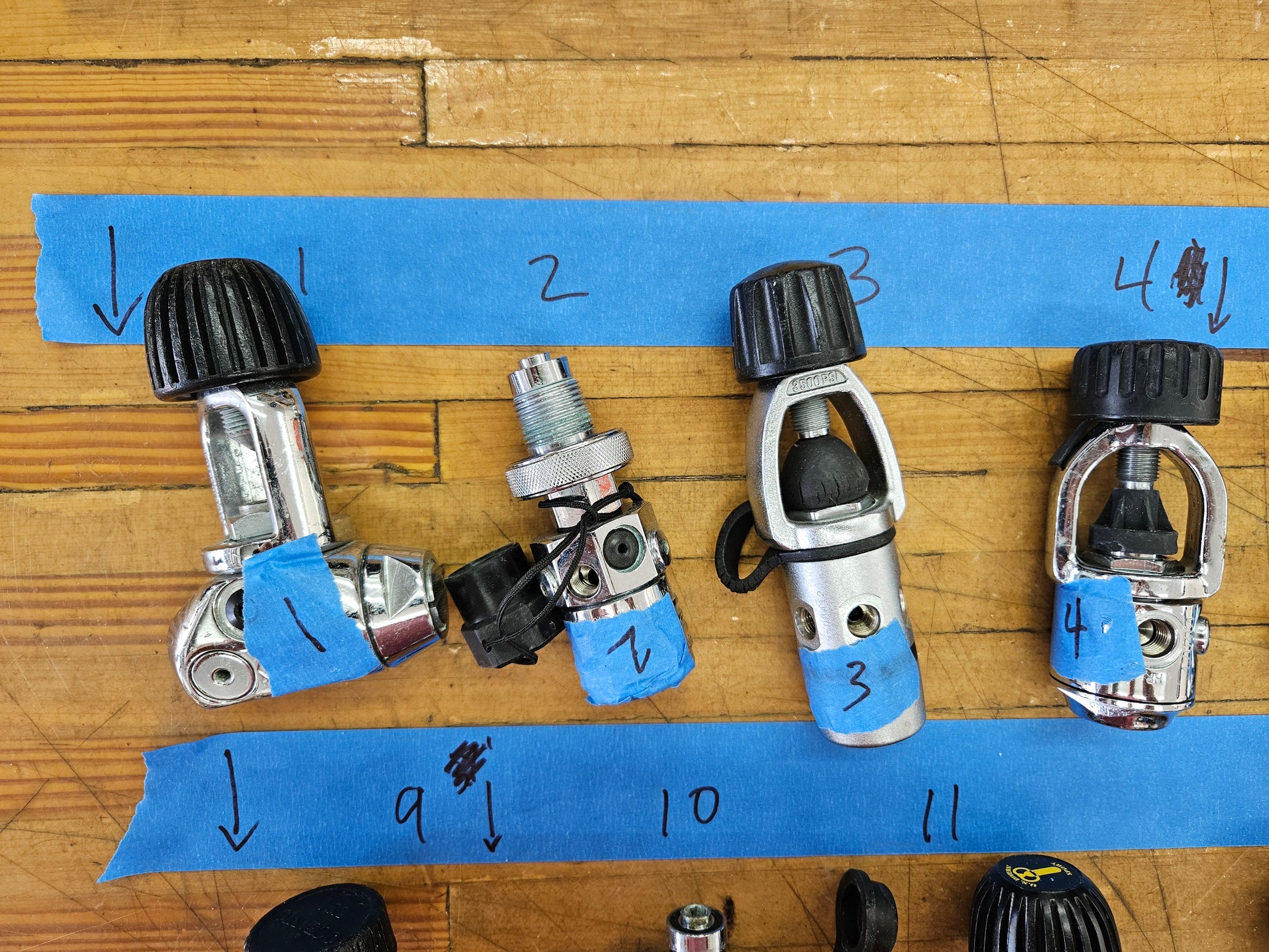 Regulators for rebuild. None of these have been tested and ALL of them should be fully rebuilt before attempting to use. Sold as is, no guarantees. No, I will not test them for you, that's why they are cheap. I will guarantee they will make a great paper weight or door stop.