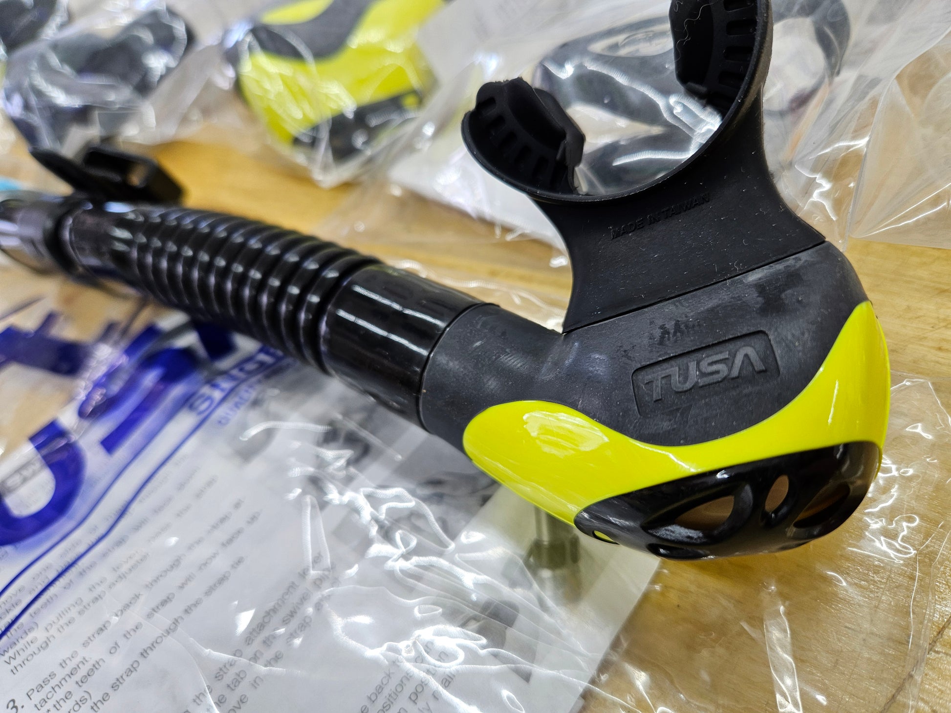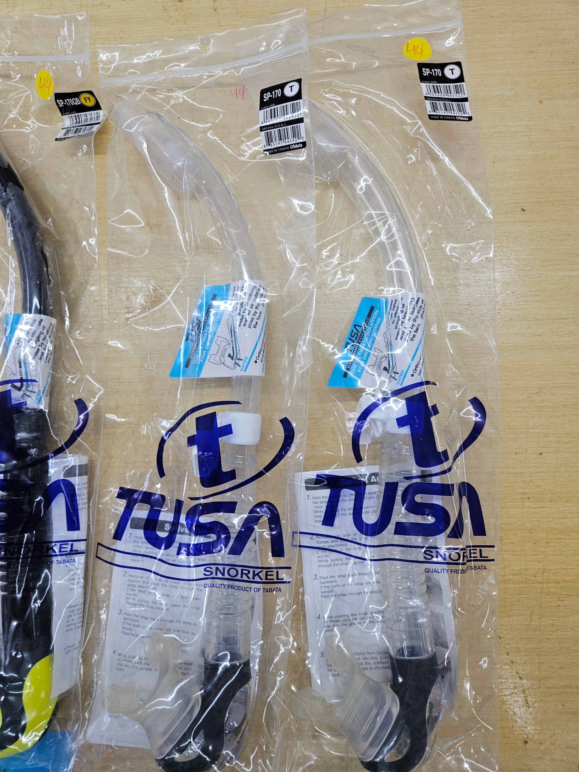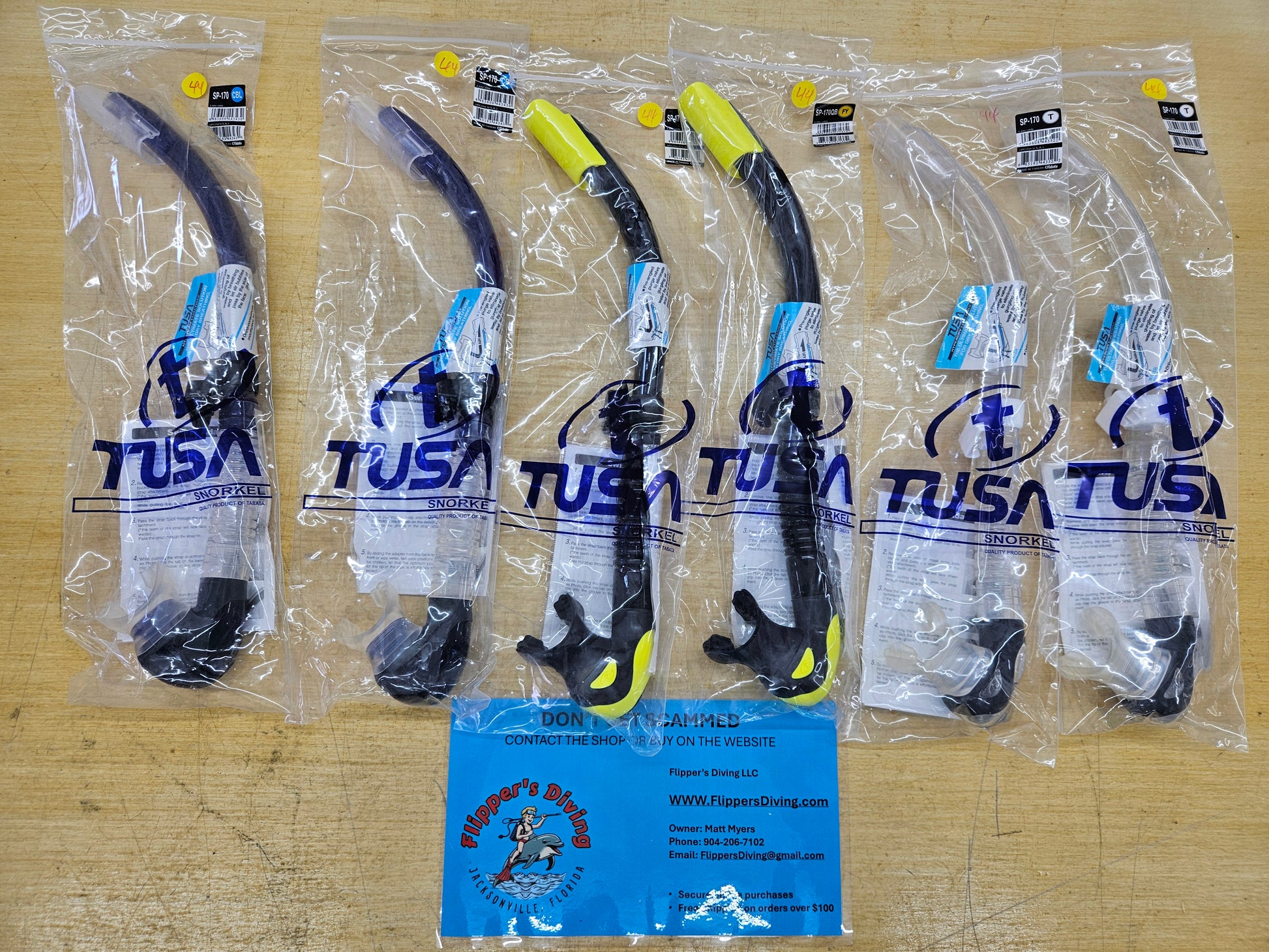 New/Old Stock - Tusa snorkels, several colors available. New and still in the bag. As you can see the dive shop that was selling them had them marked at $44... so less than 1/2 price!