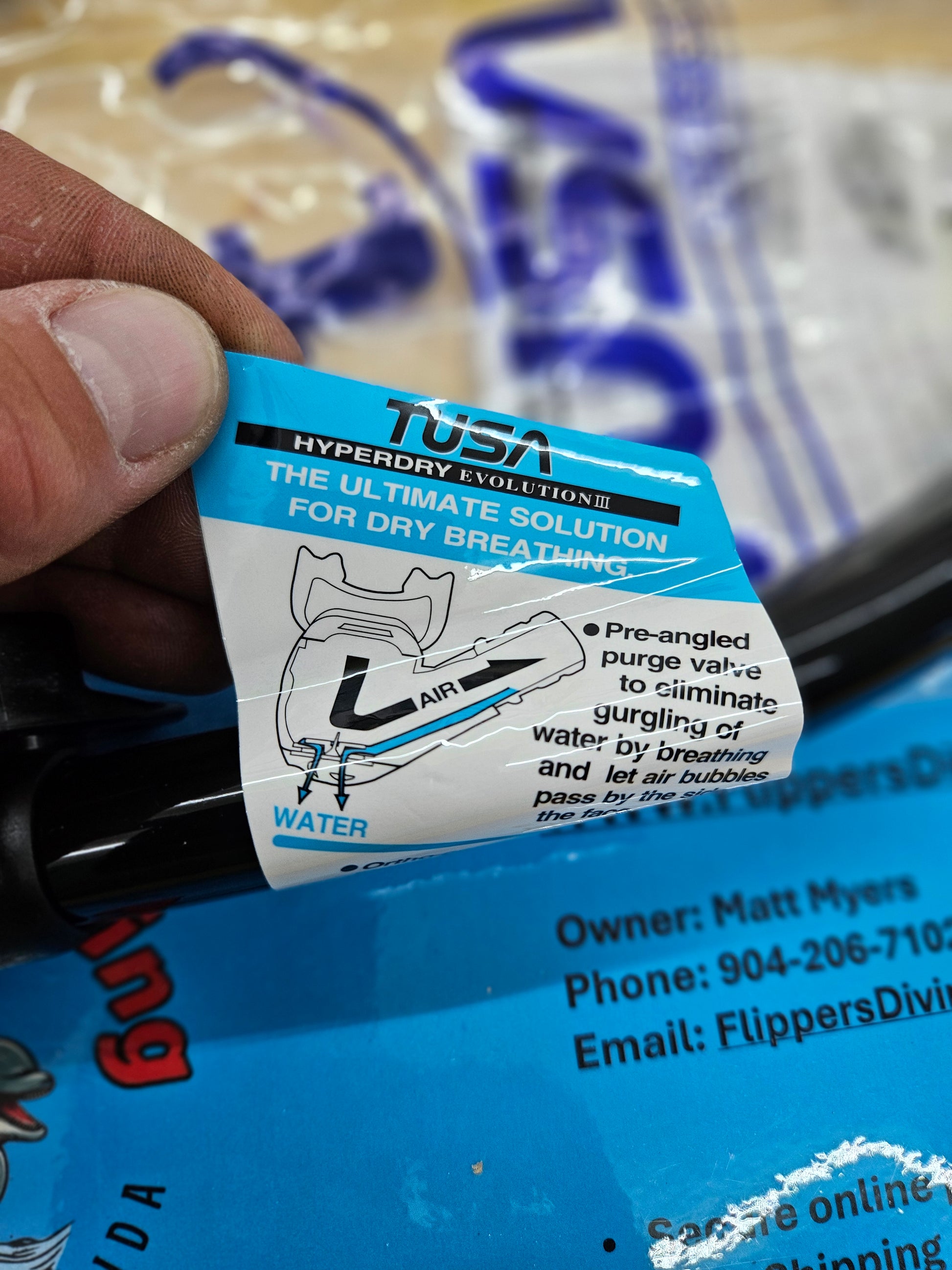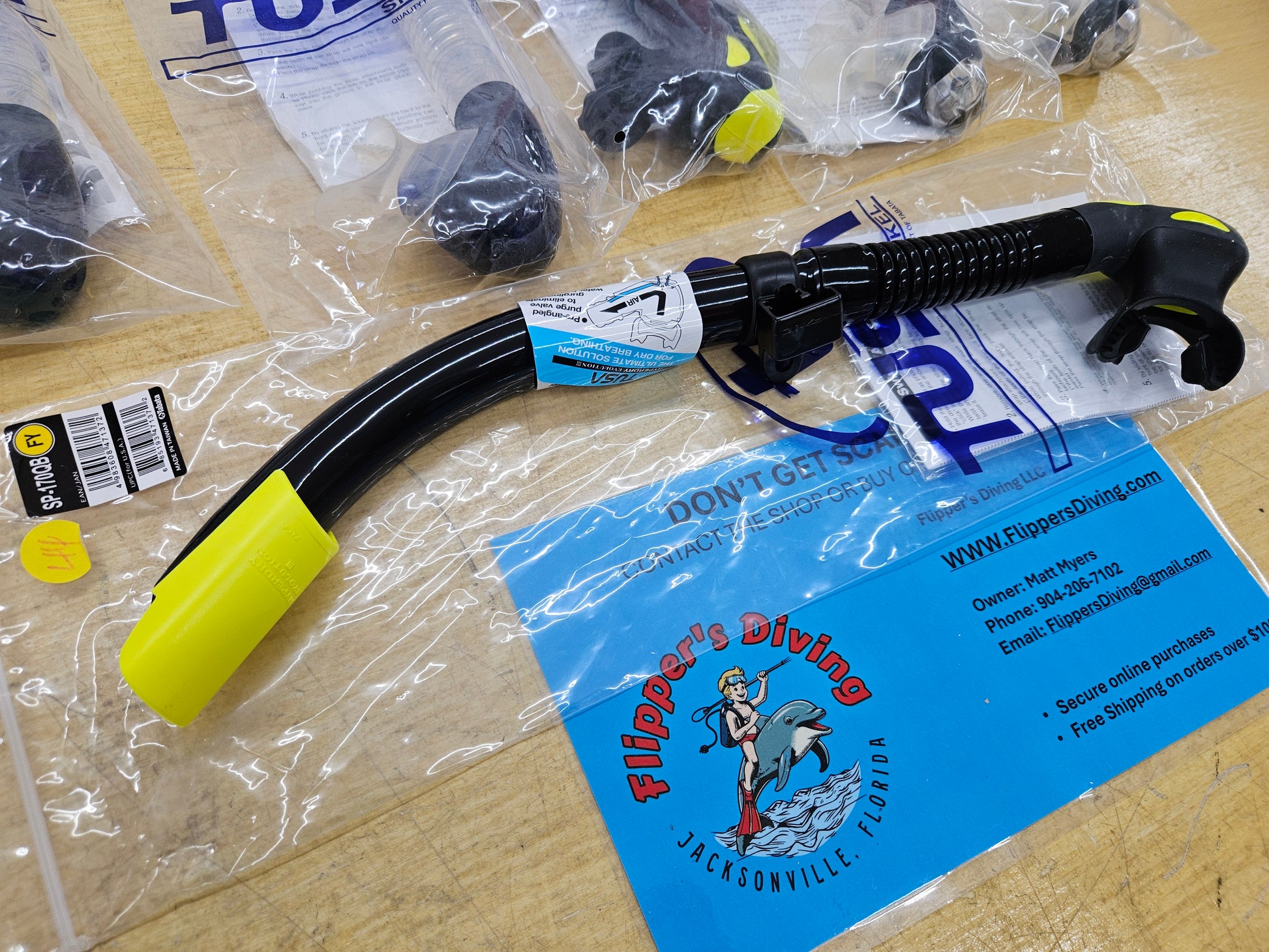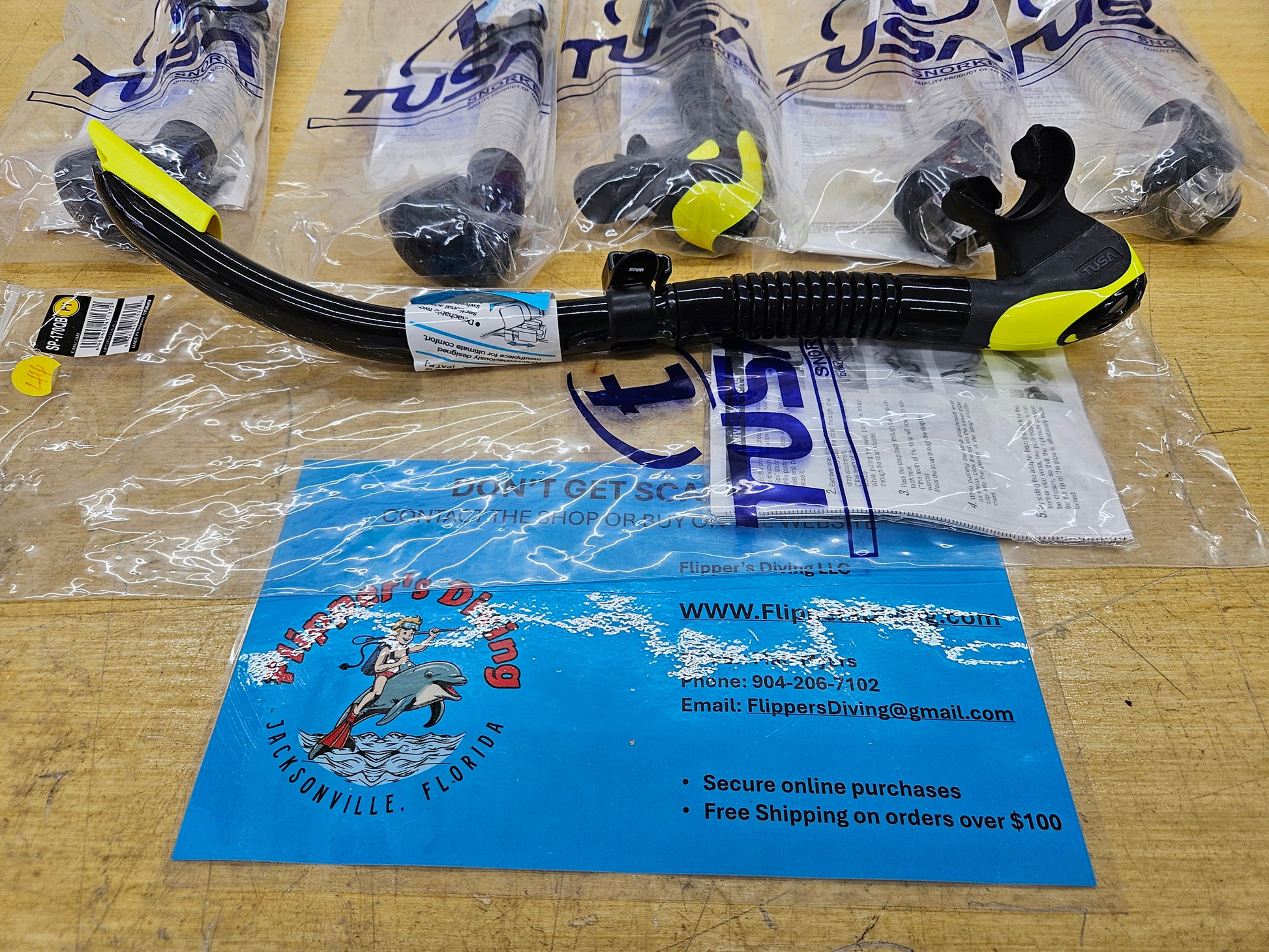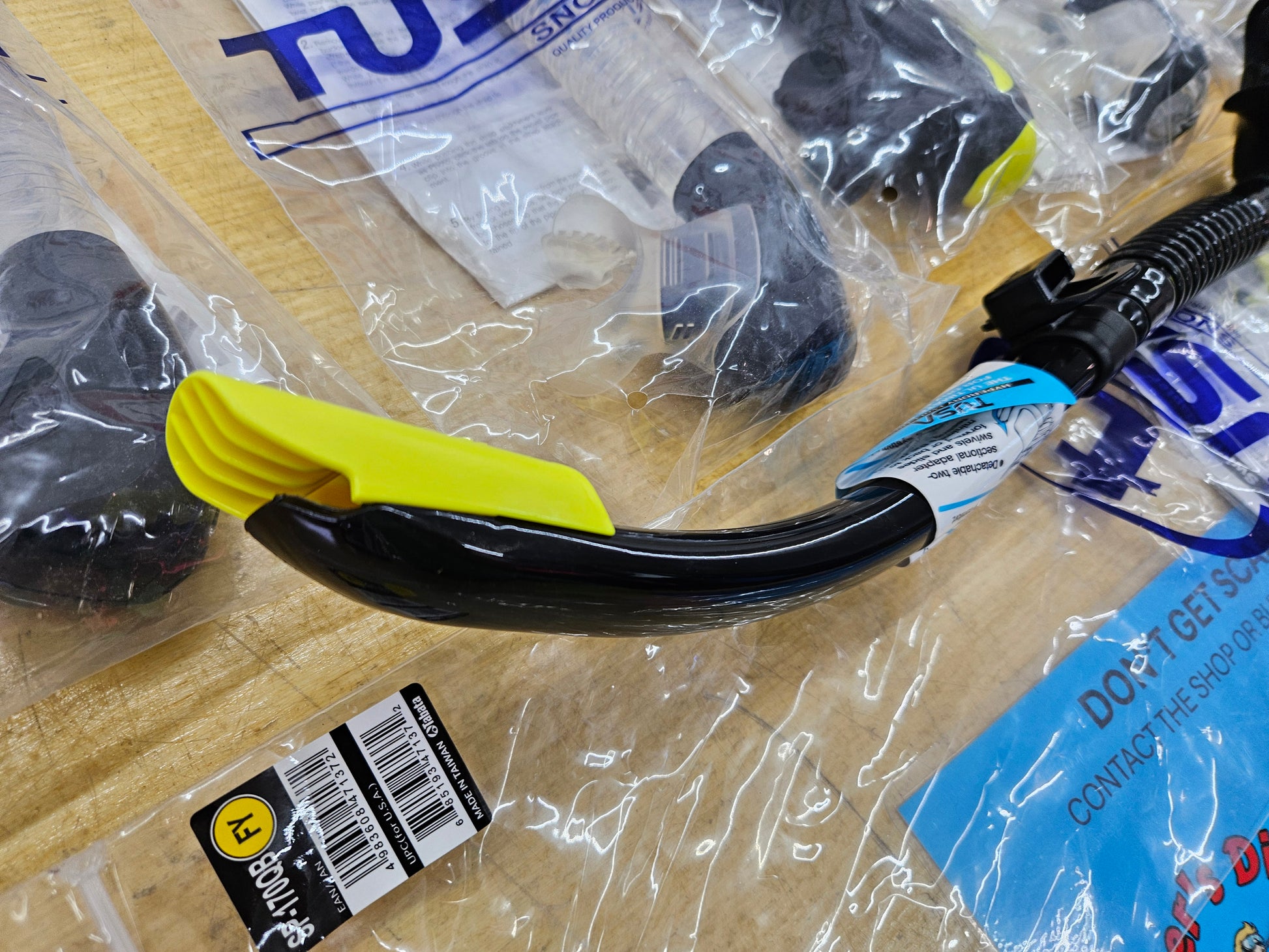 New/Old Stock - Tusa snorkels, several colors available. New and still in the bag. As you can see the dive shop that was selling them had them marked at $44... so less than 1/2 price!