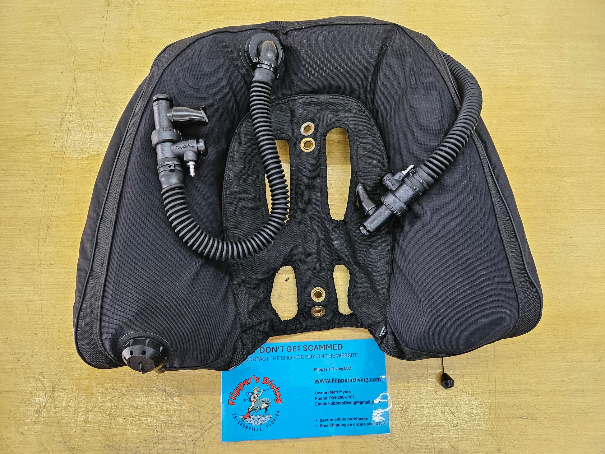 This is a custom made dual bladder doubles wing by Zeagle. To my knowledge Zeagle never mass produced a dual bladder doubles wing and the previous owner tells me he had Zeagle make this one off wing specifically for him. Total lift capacity is unknown, however based on size and bladder capacity I would guess it to be 45-55lbs. Wing has been leak tested and it is dive ready. Both power inflators are super smooth, zero issues.