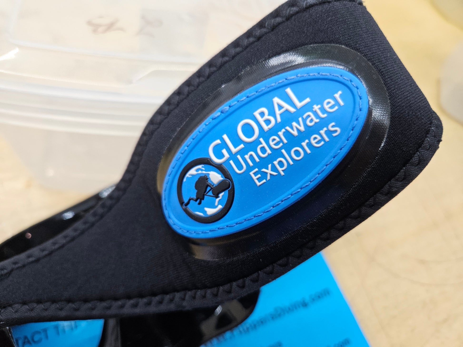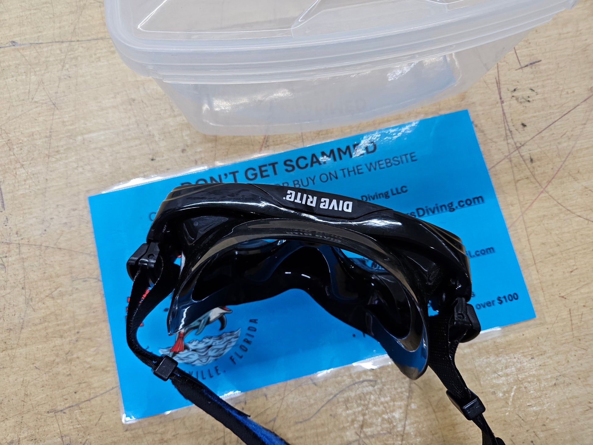 Dive Rite mask, excellent condition with very little use. Comes with Global Underwater Explorers mask strap pad and box. You too can be a GUE diver!