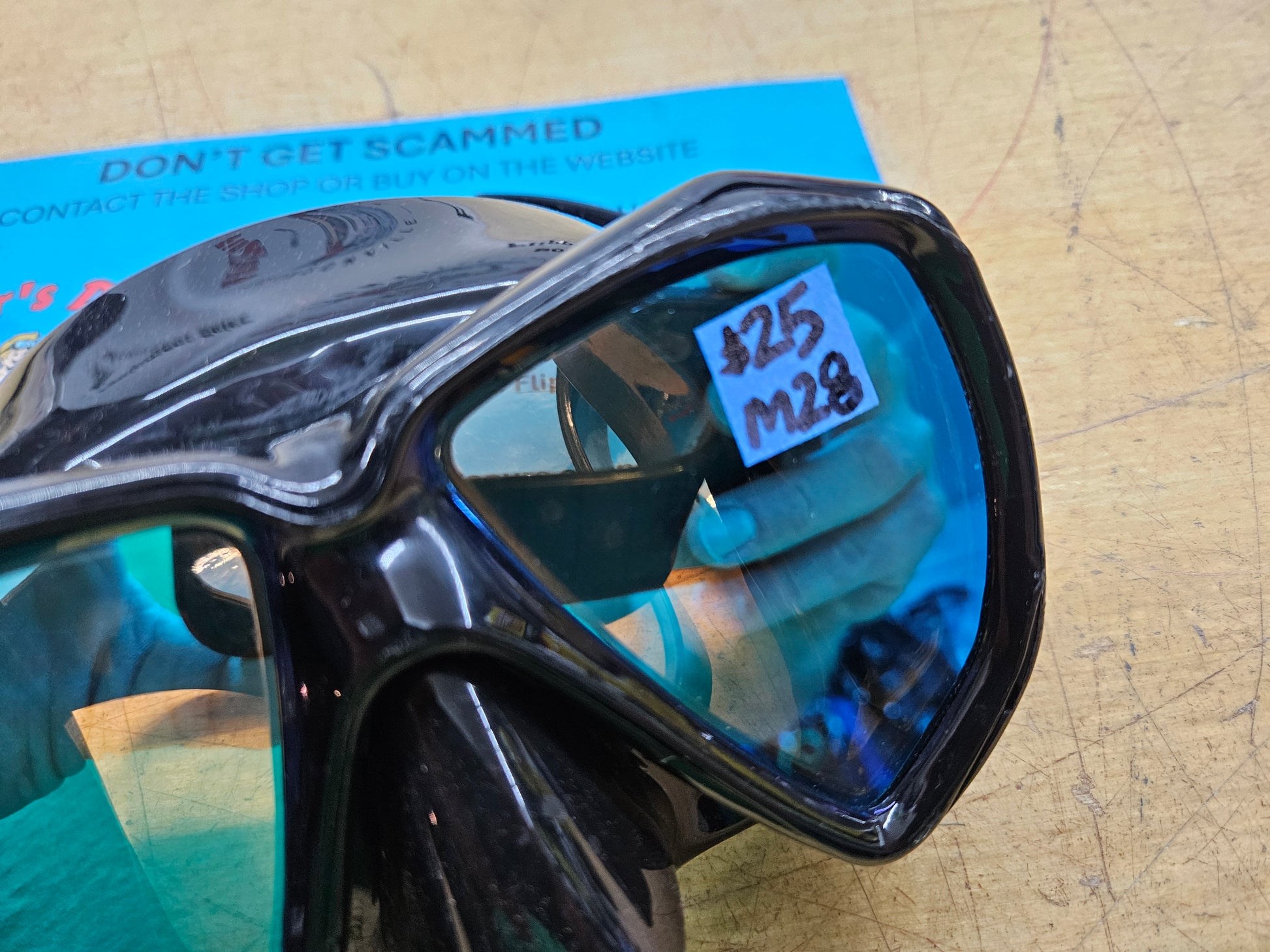 Edge "Ultra HD" dive mask. Large lens with teardrop shape for wider range of vision. Tinted lenses reduce glare from overhead sunlight.