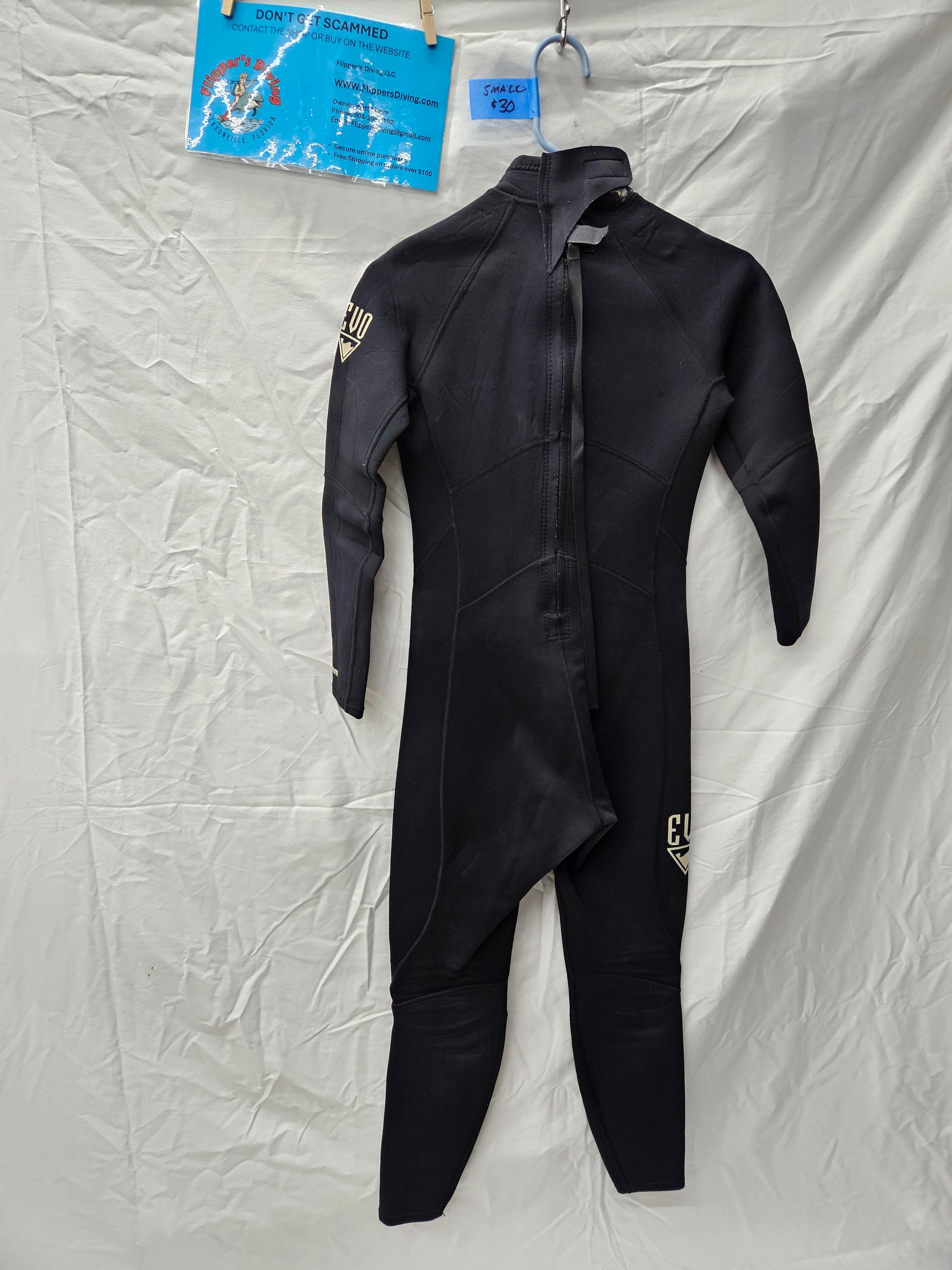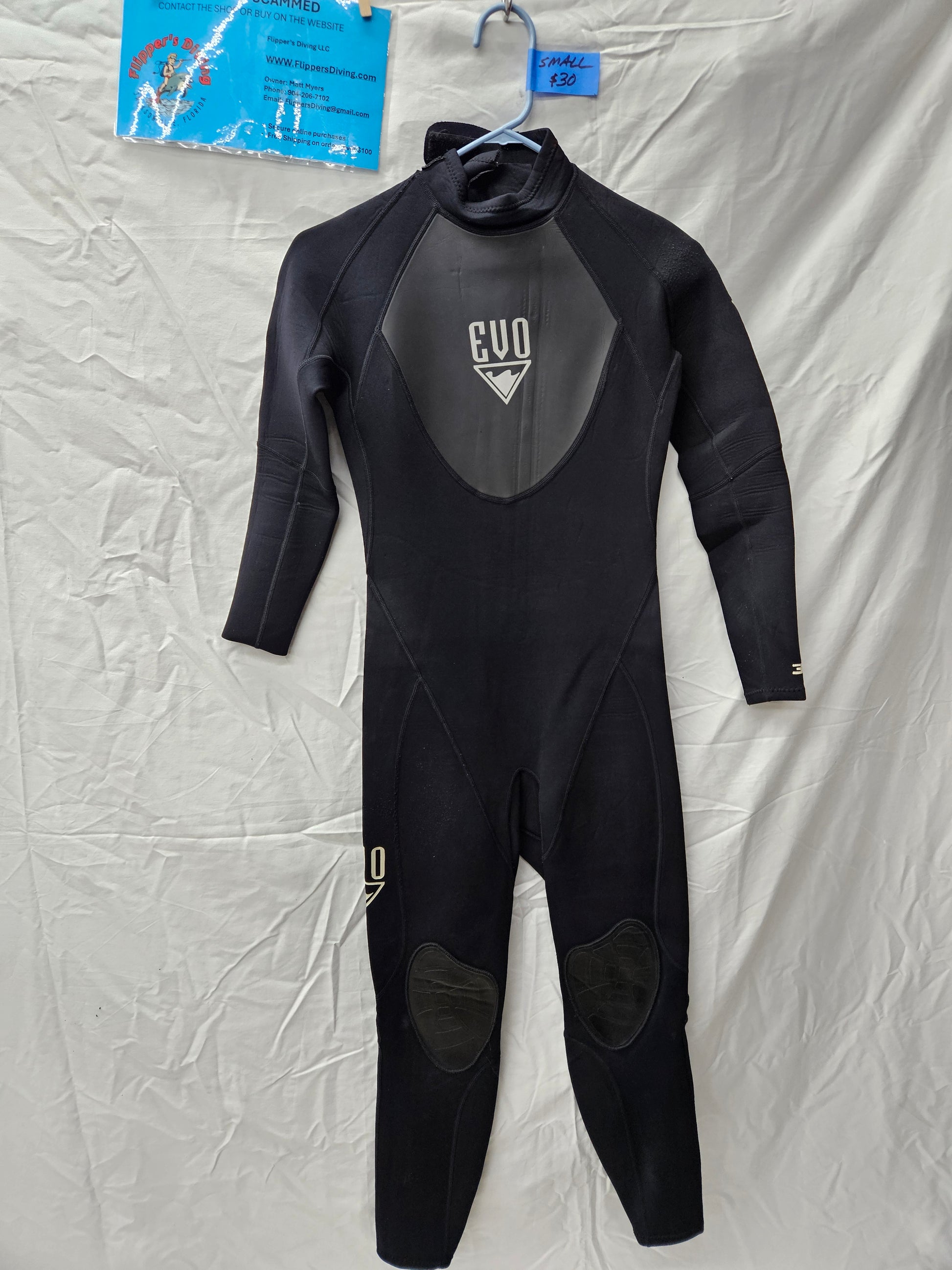 Evo 3mm full wetsuit. Overall fair condition. size small.