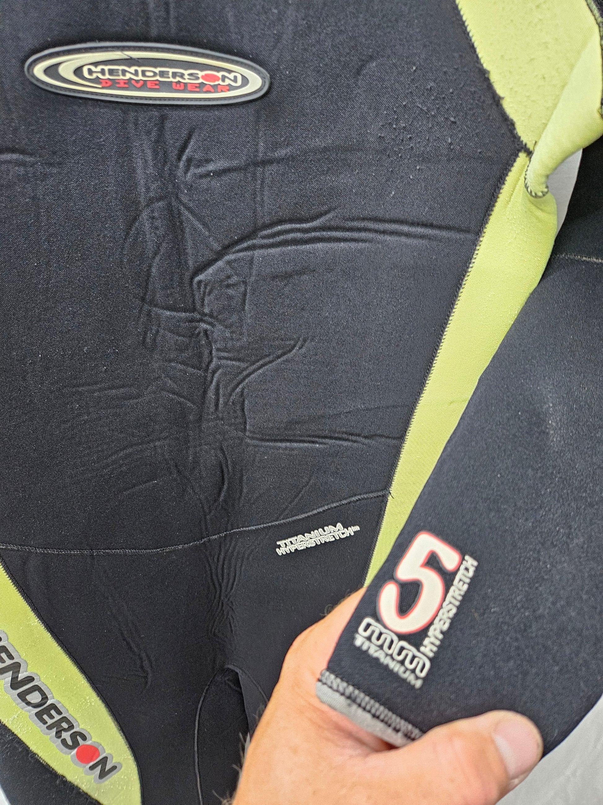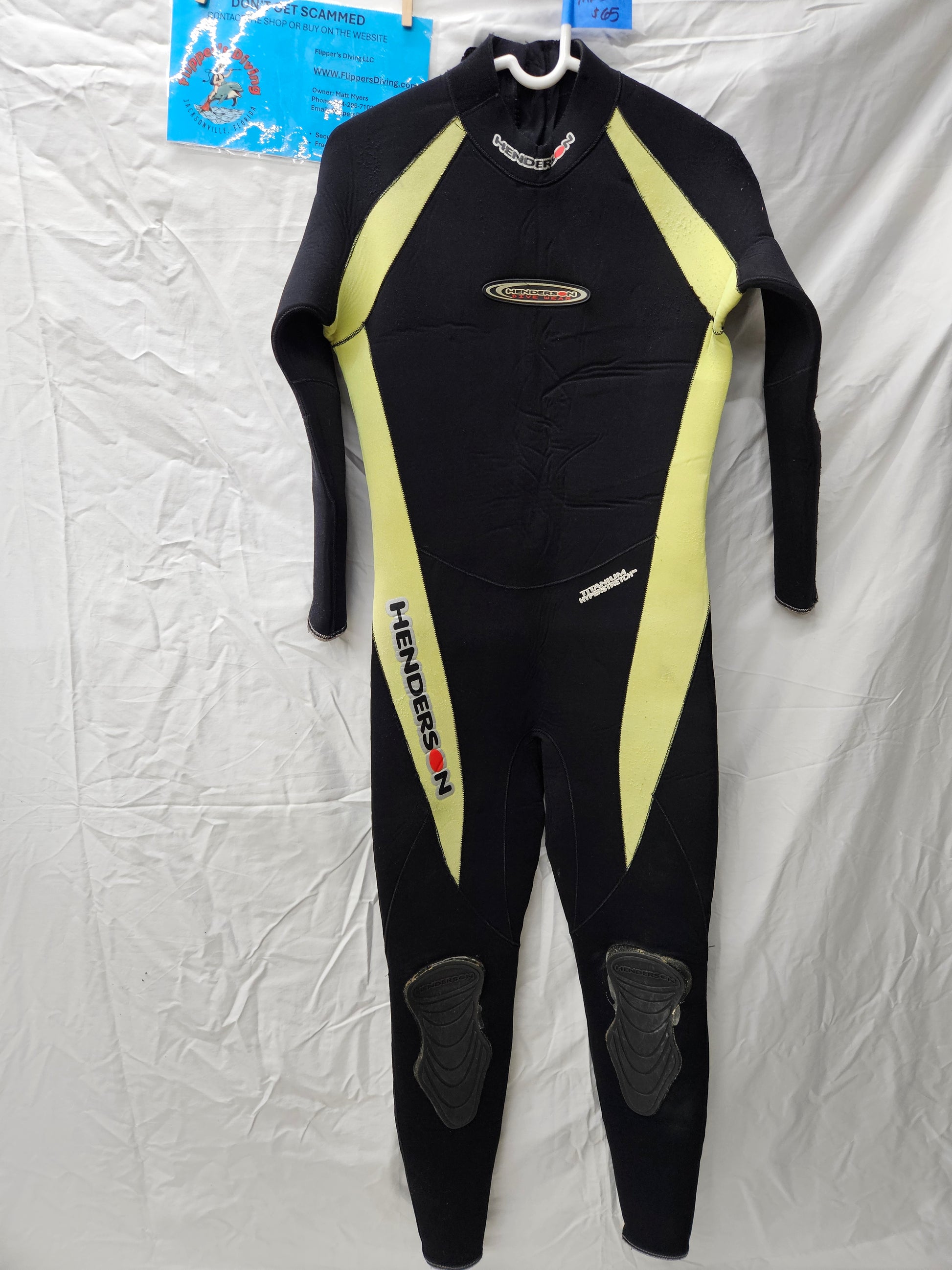 Henderson 5mm hyperstretch wetsuit. Overall good condition, no rips/tears or excessive wear/ Knee pads peeling slightly. Size Medium.