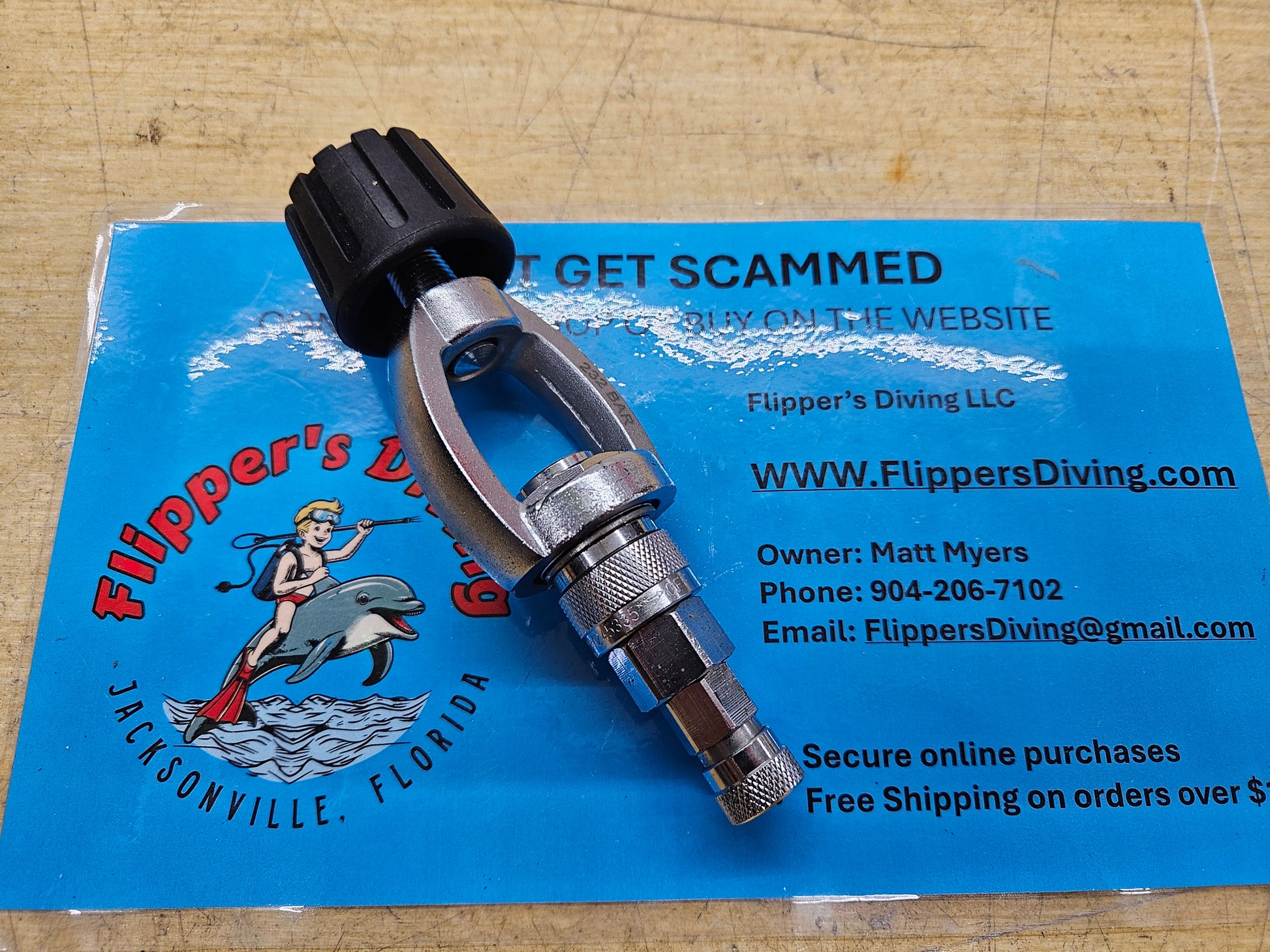 I don't know exactly where this came from, but I believe this is a fill adaptor for a spare air or similar scuba bottle. The small quick connect fitting is the same used in airsoft or paintball guhns for refills... so likely could be used for that as well. Sold as is.