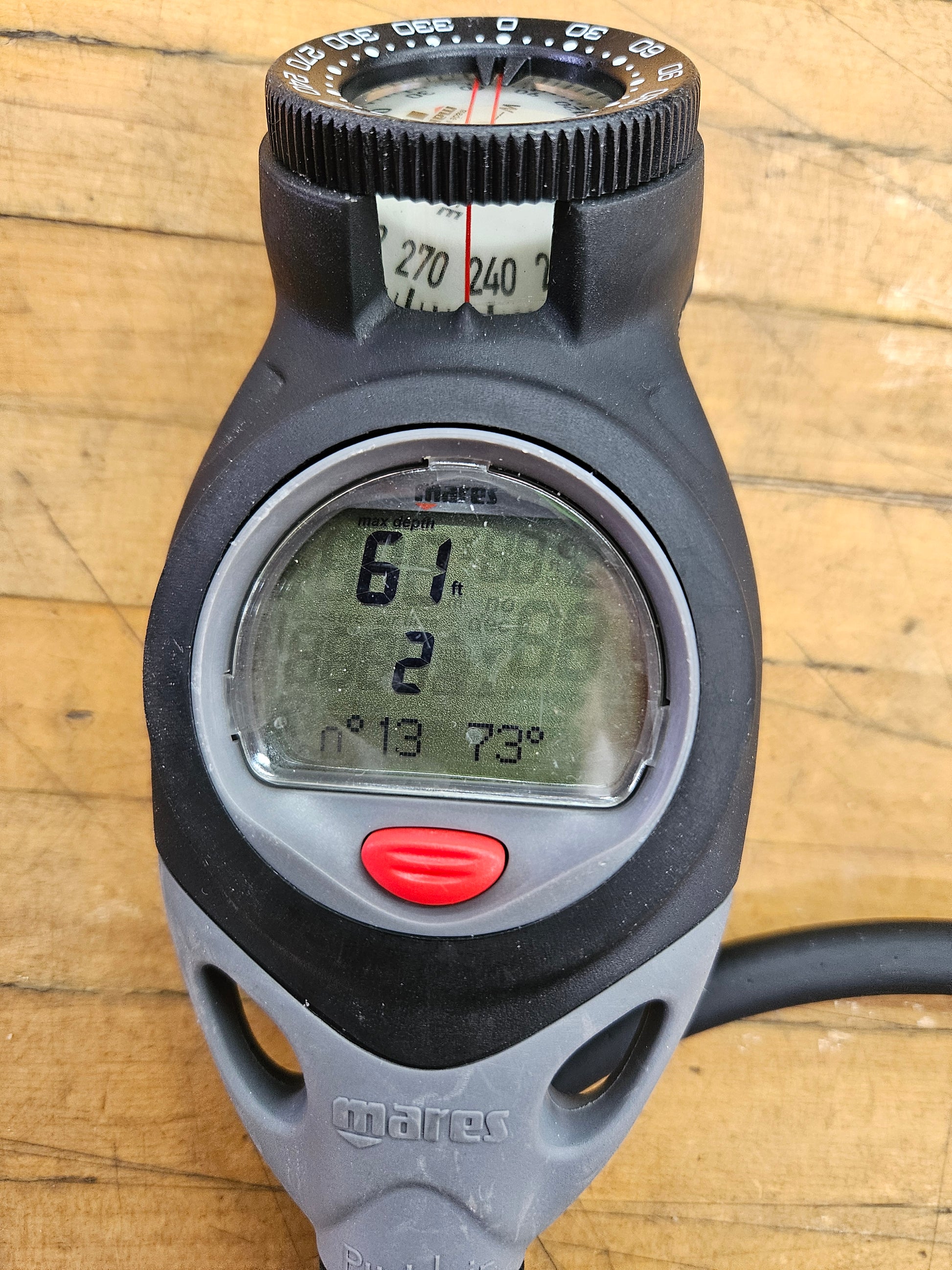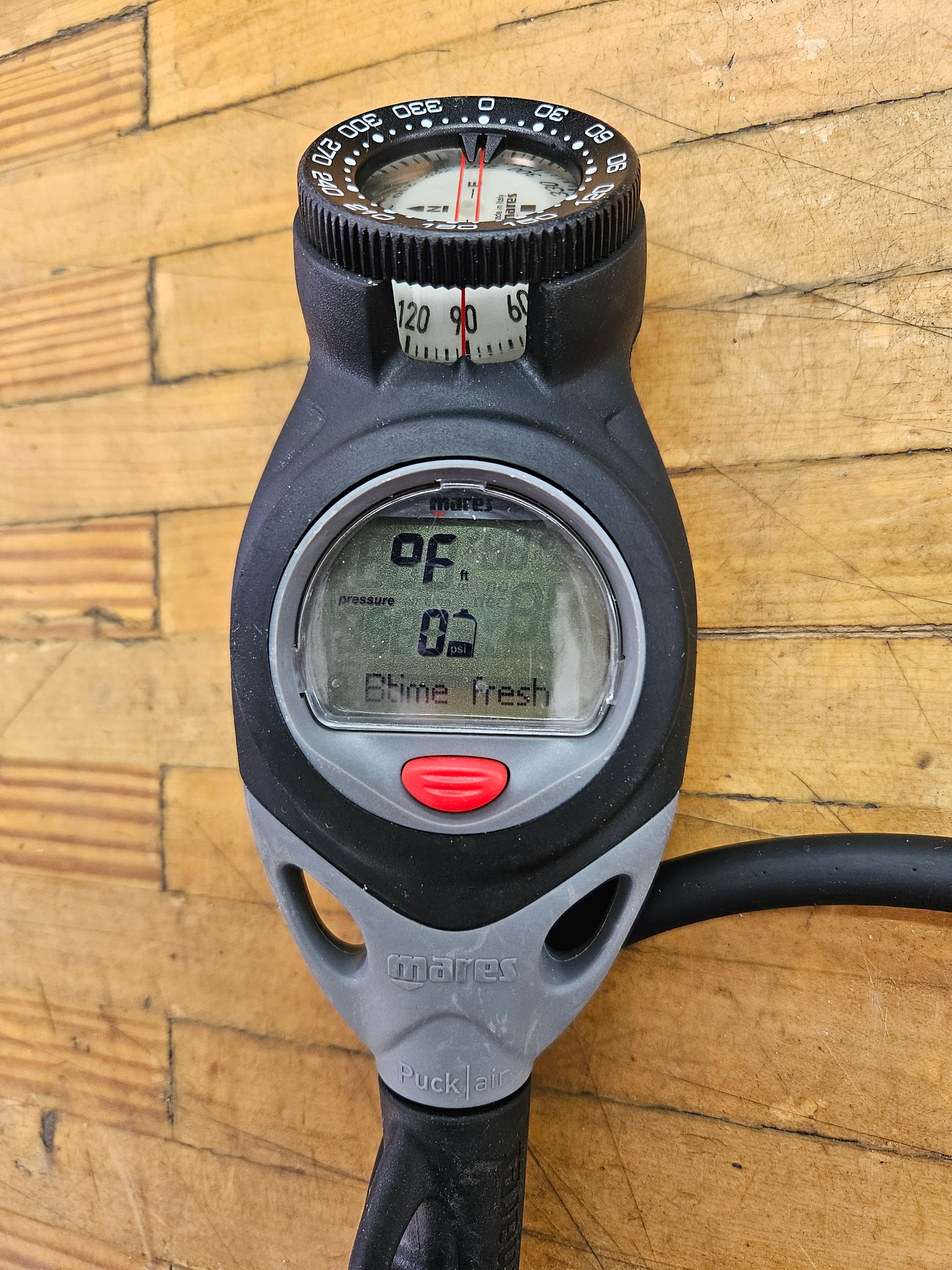 Ordenador de buceo Mares Puck Pro Air integrado. La unidad está en muy buen estado y se le ha realizado una revisión reciente con batería nueva. Se puede instalar en casi cualquier regulador. El ordenador registra todos los datos típicos de inmersión, admite mezclas de nítrox hasta el 50 % y también registra digitalmente el consumo de gas. ¡También incluye un módulo de brújula!