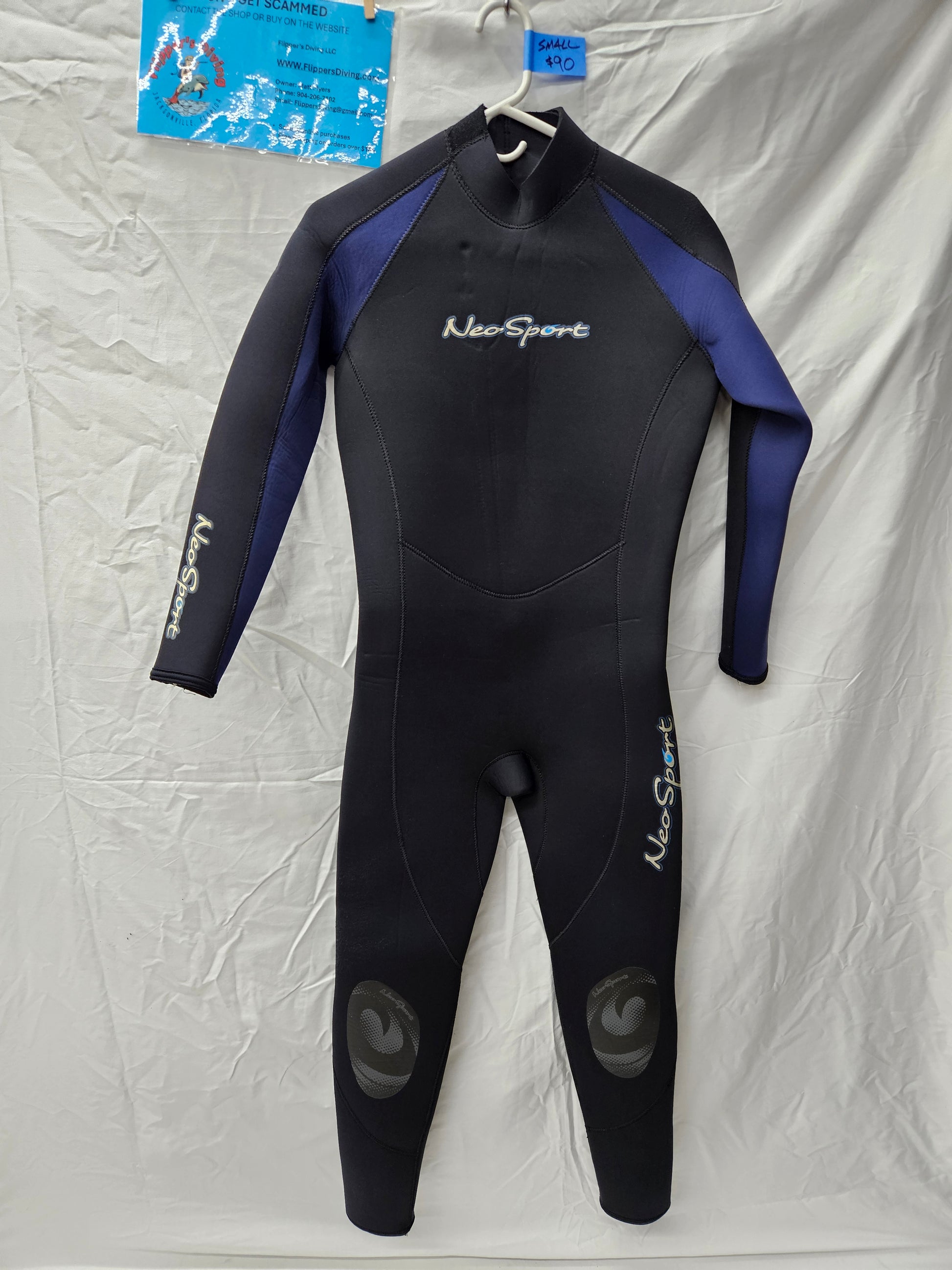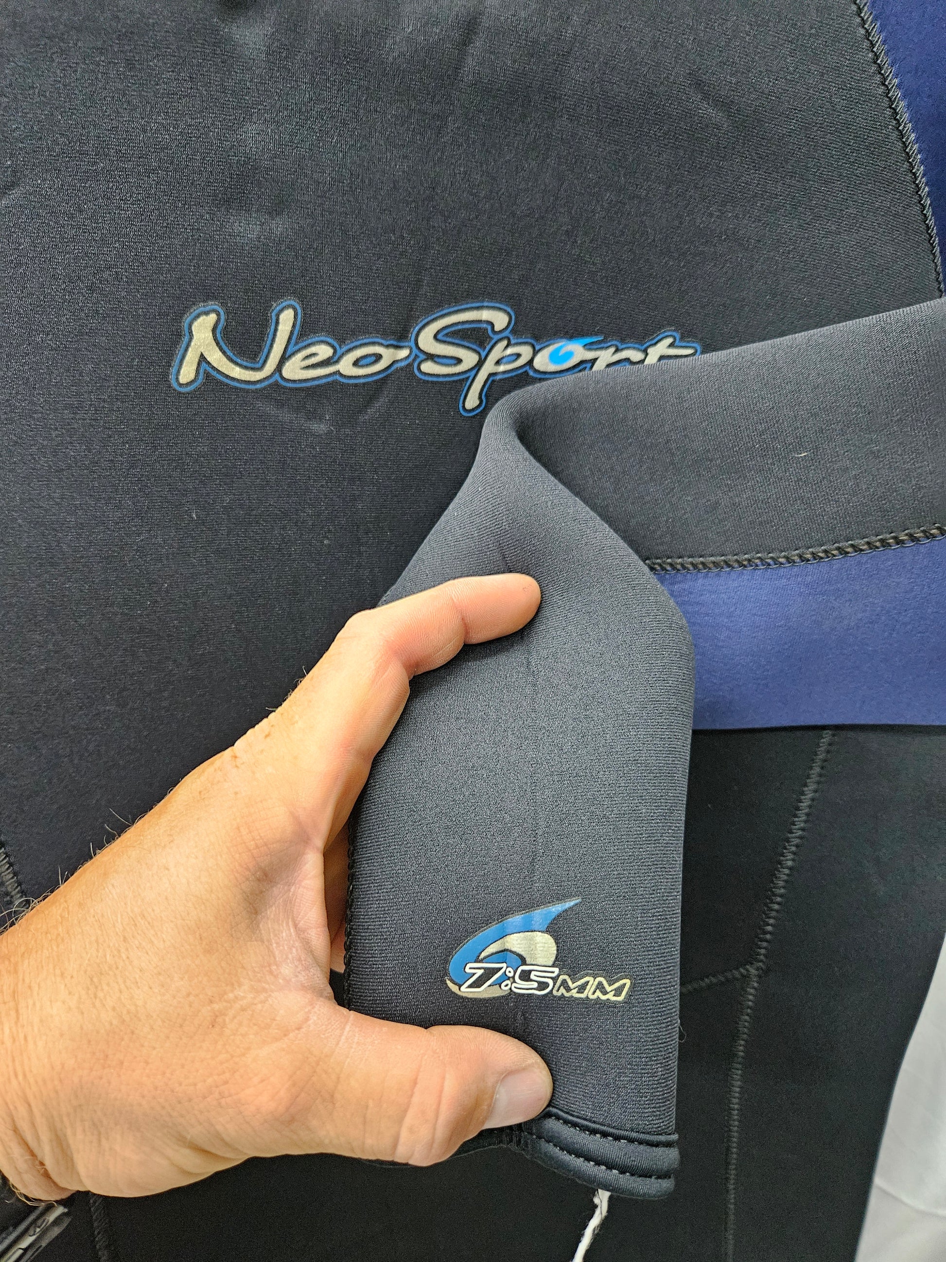 Neosport 7/5mm full wetsuit... like new condition, looks fantastic! Blue/Black color, back entry zipper. size Small.