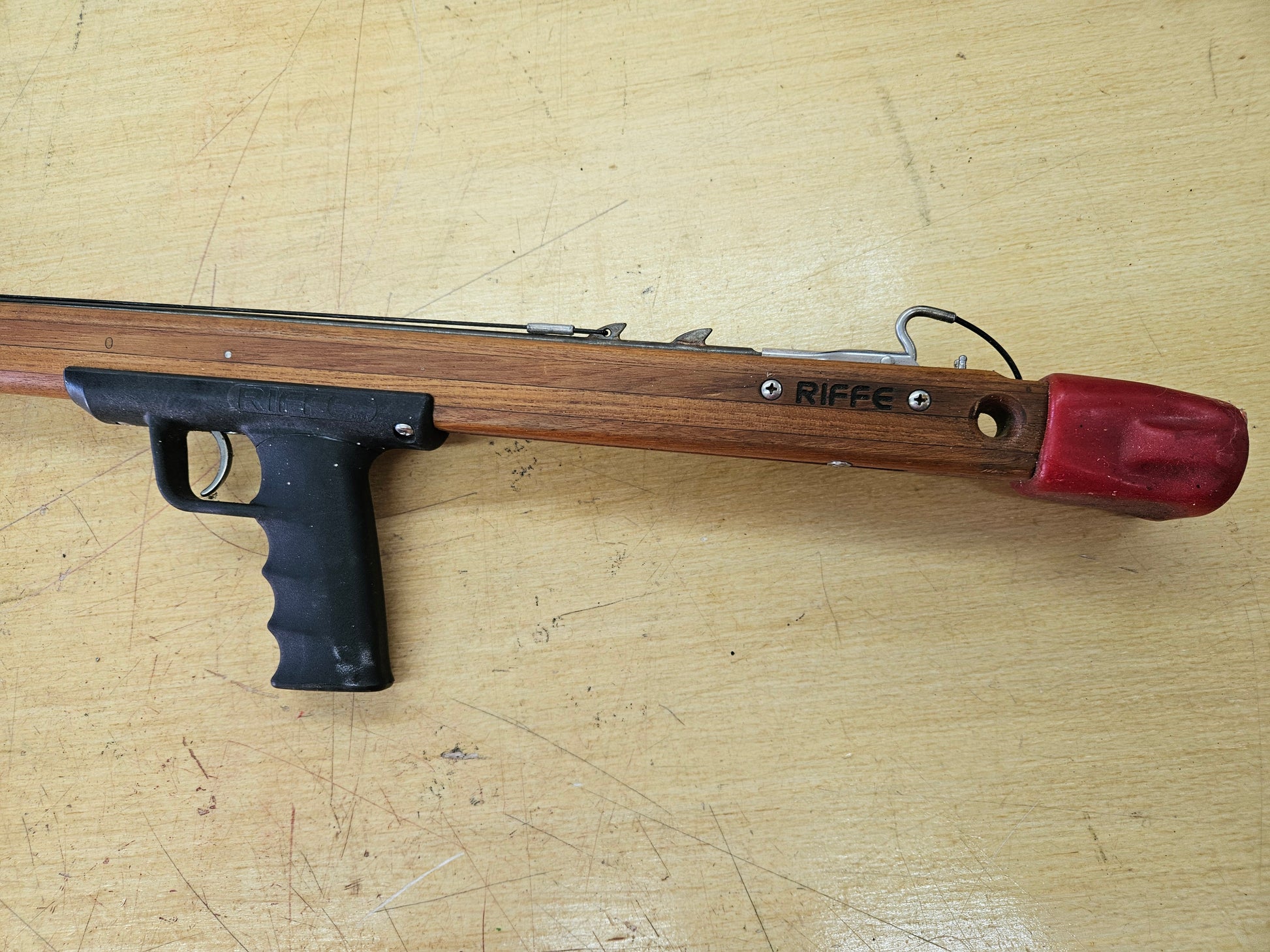 Riffe 44" mid handle. Overall very good condition. Bands should likely be replaced before the season but are still functional.