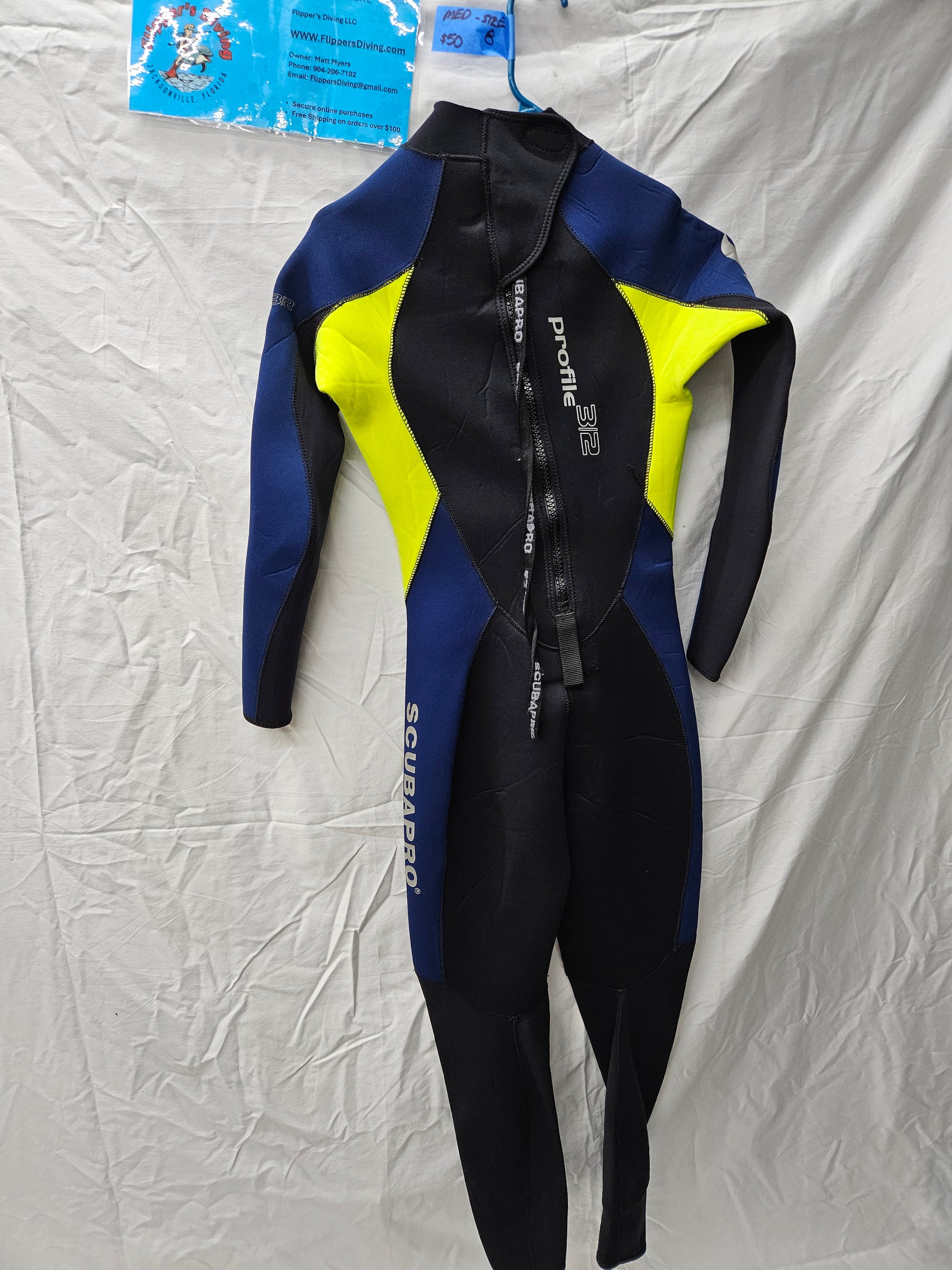 Scubapro "Profile" 3/2mm full wetsuit. Overall in very good condition, no rips/tears or excessive wear. size medium/women's size 8.