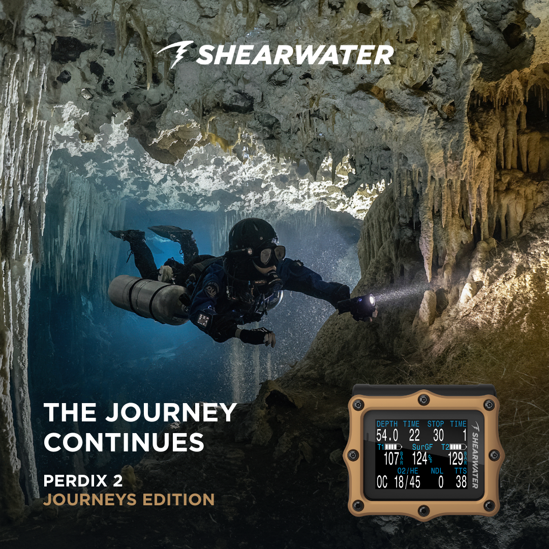 El Perdix 2 Ti de Shearwater Research of Canada es un ordenador de buceo con descompresión completa pensado para buceadores recreativos. El Perdix 2 Ti admite la integración inalámbrica de la presión de gas y el seguimiento de hasta cuatro presiones de gas de botella diferentes (se requieren transmisores opcionales). De fábrica, el Perdix Ti incluye funciones de circuito abierto y cerrado para mezclas de aire, nítrox y trímix, además de varias funciones de navegación mejoradas para la brújula digital de tres ejes con compensación de inclinación. El Perdix 2 Ti está diseñado para funcionar con cualquier tipo de batería AA, incluyendo alcalinas, de litio y recargables. El firmware estándar admite menús en inglés y unidades de medida imperiales y métricas.