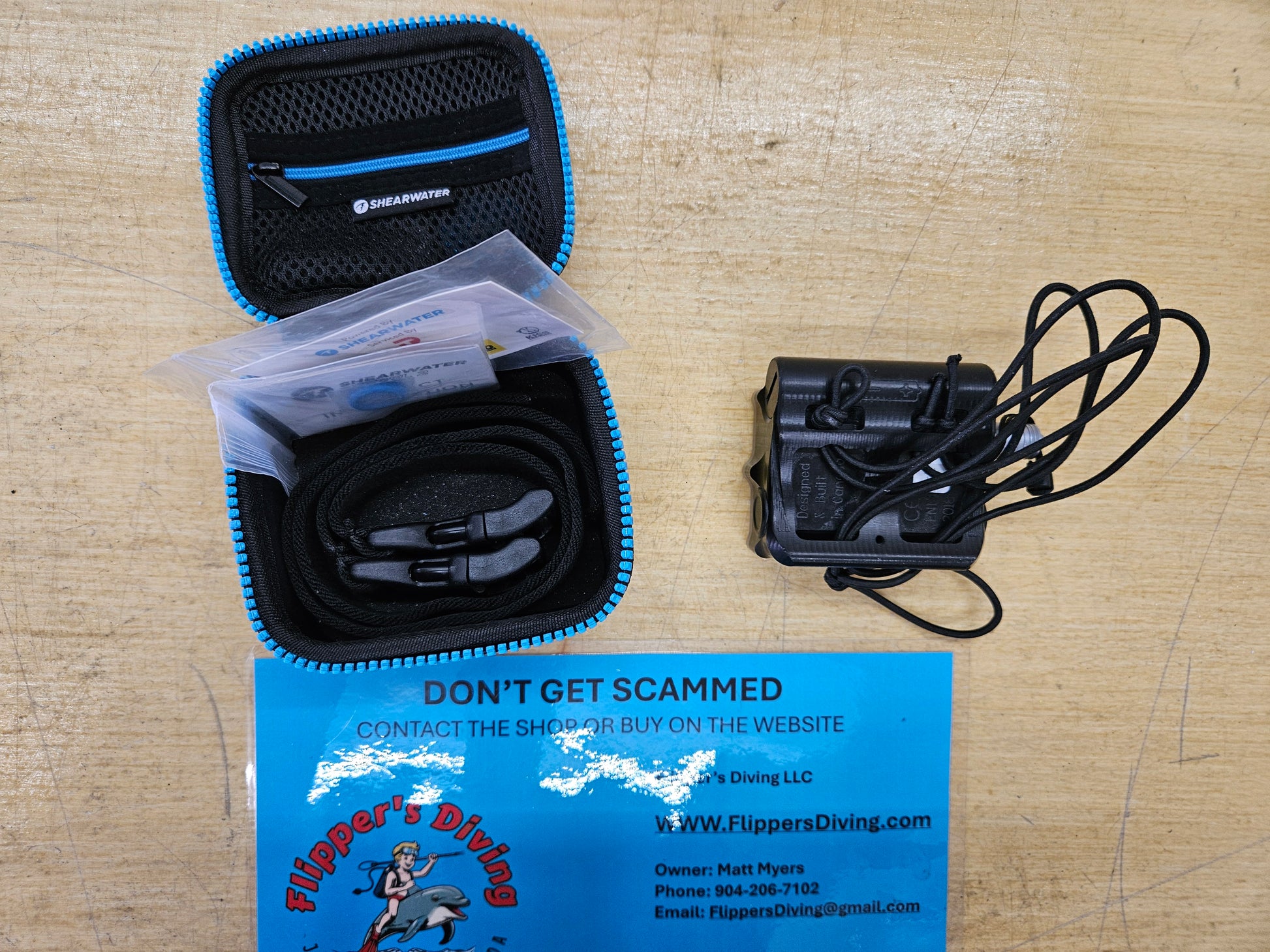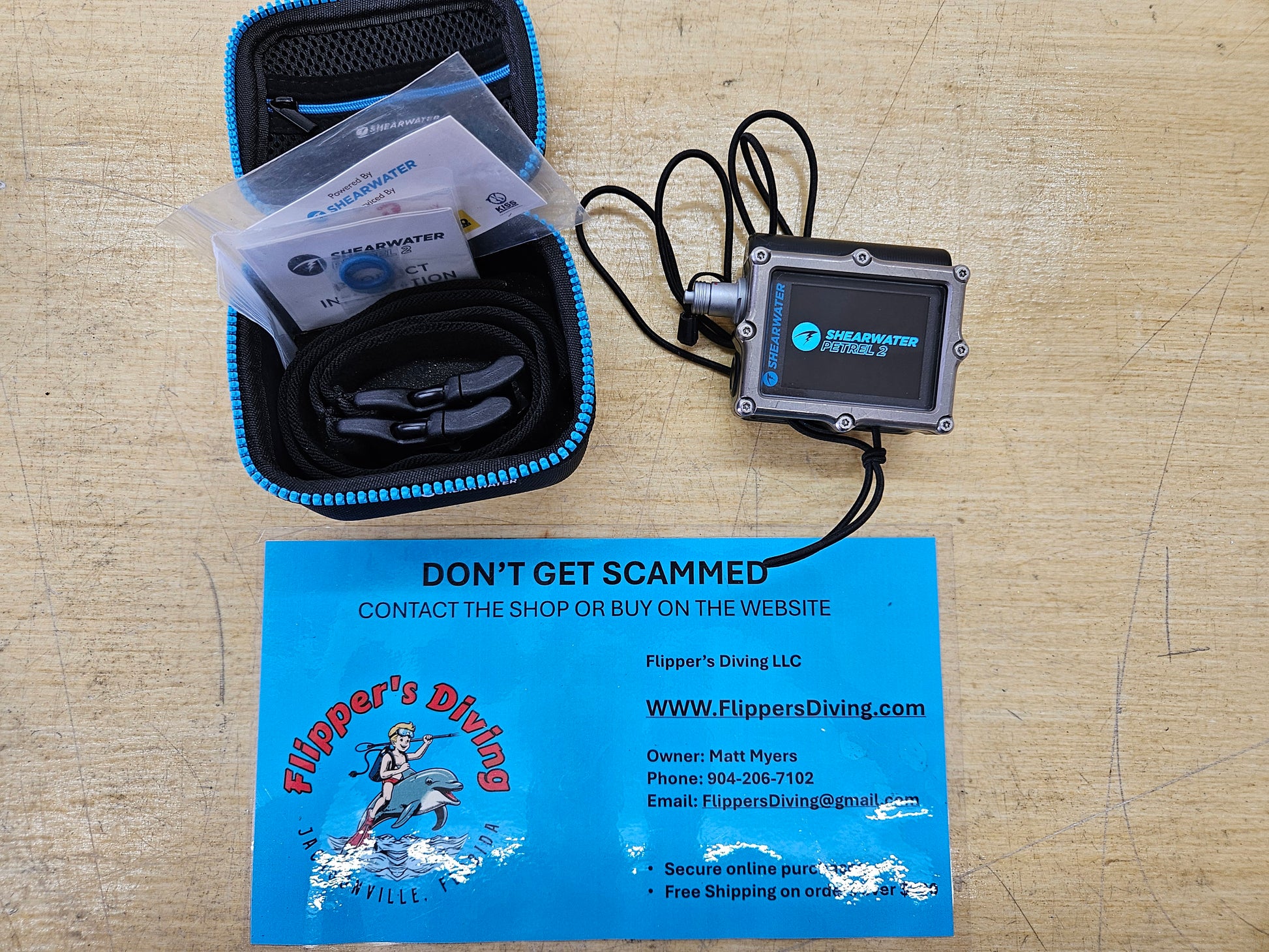 Shearwater Petrel 2 EXT with fisher connection for CCR use. Can be used with out a CCR in "stand alone" mode. Top end technical diving computer... multi gas, trimix/nitrox, CCR, adjustable gradient factors... you name it, it's a shearwater. Computer is roughly 4-5 years old but has just 90 dives/114 hours of dive time. Titanium bezel upgrade. Comes with case original straps and the extras you see pictured.