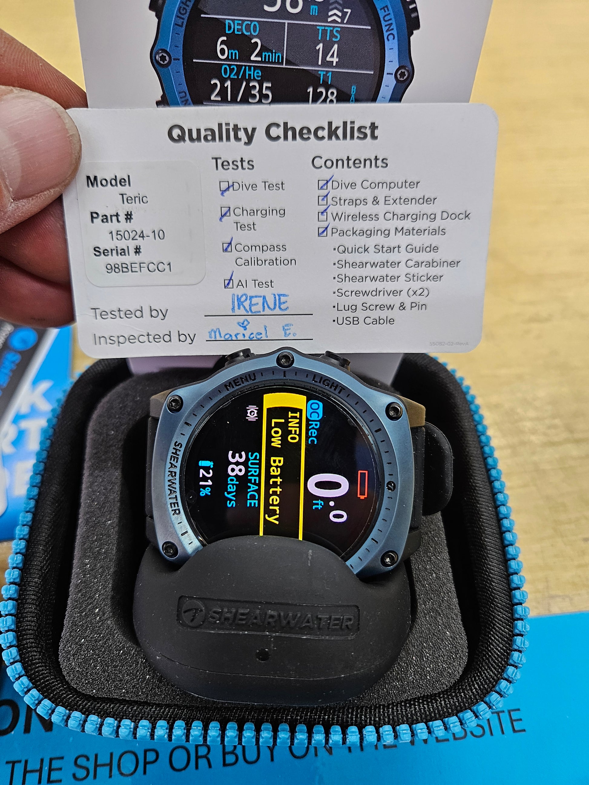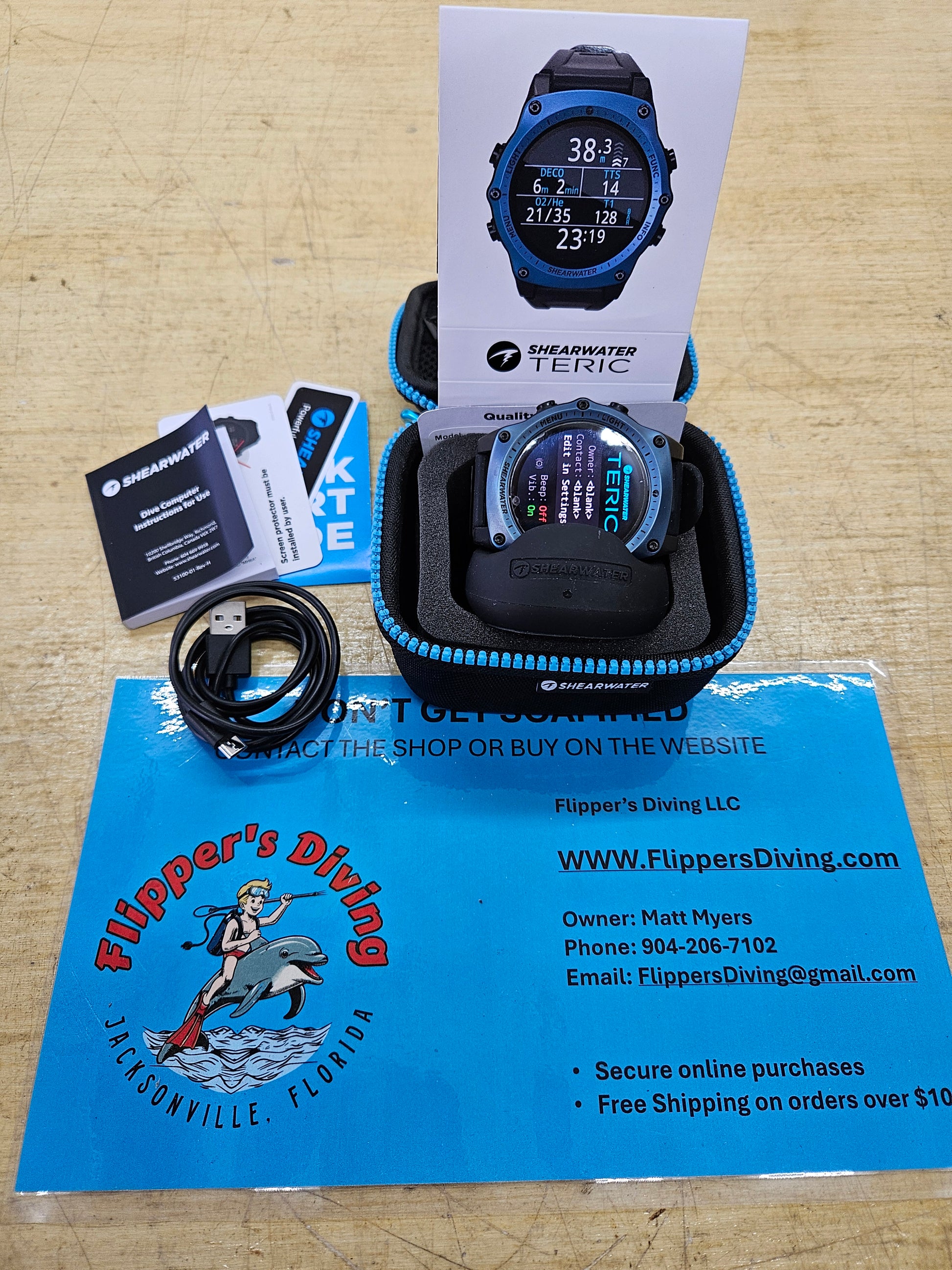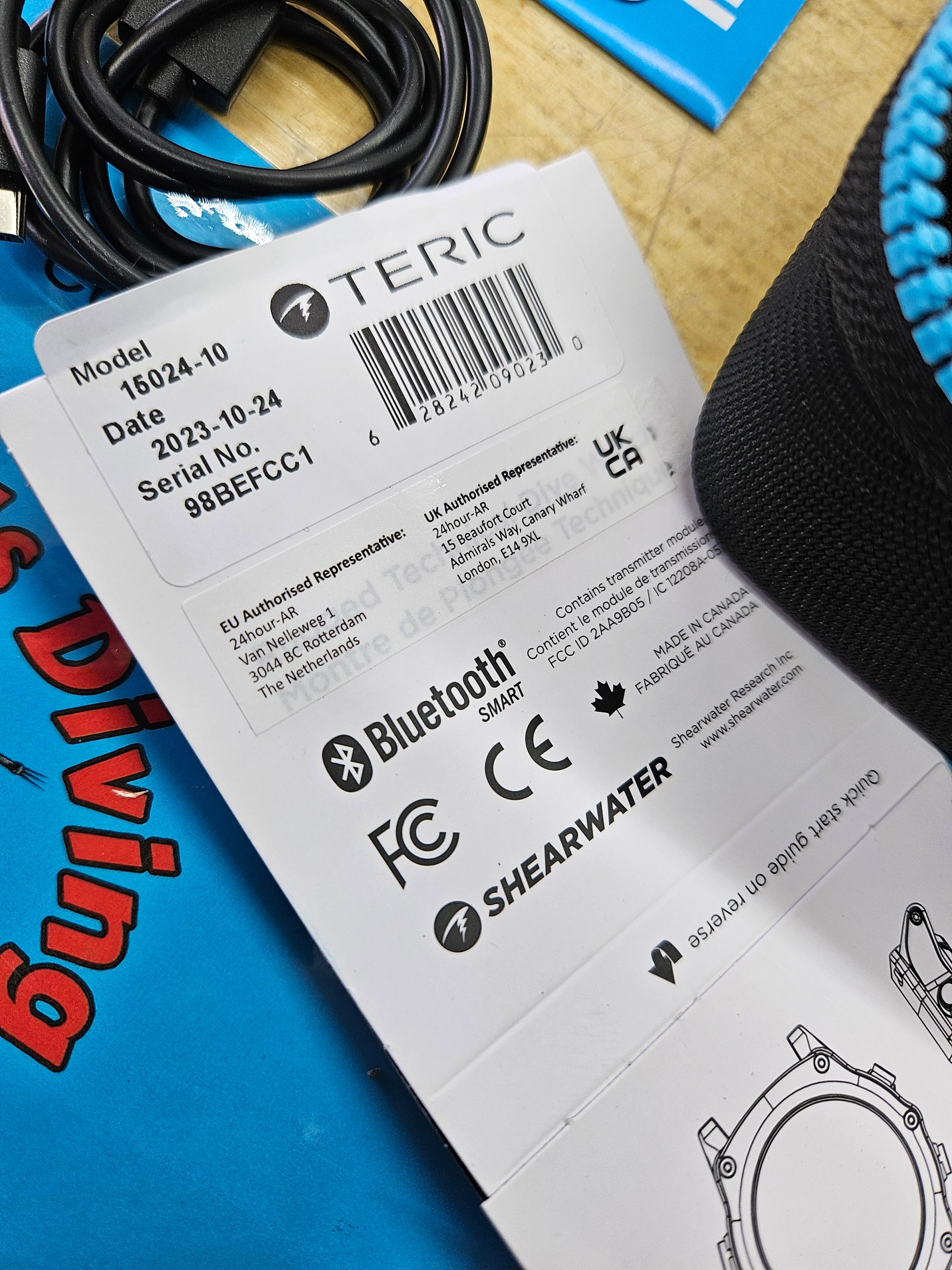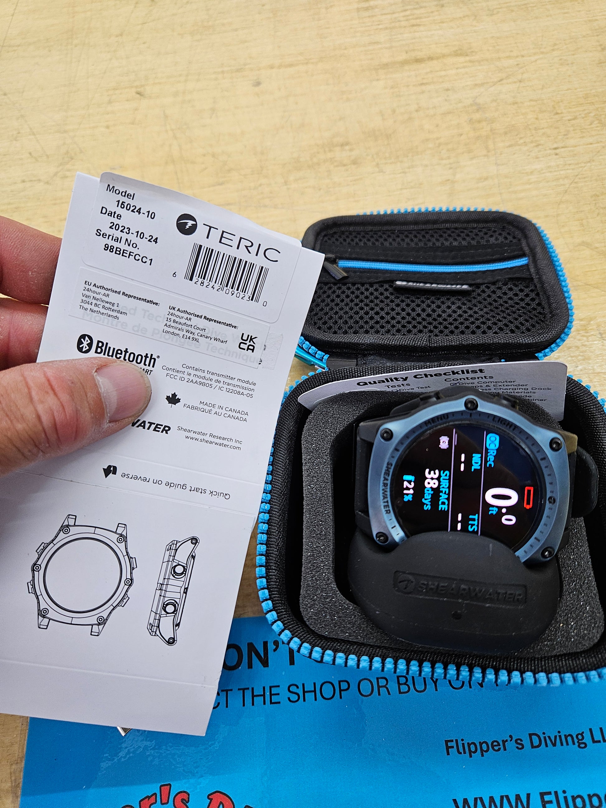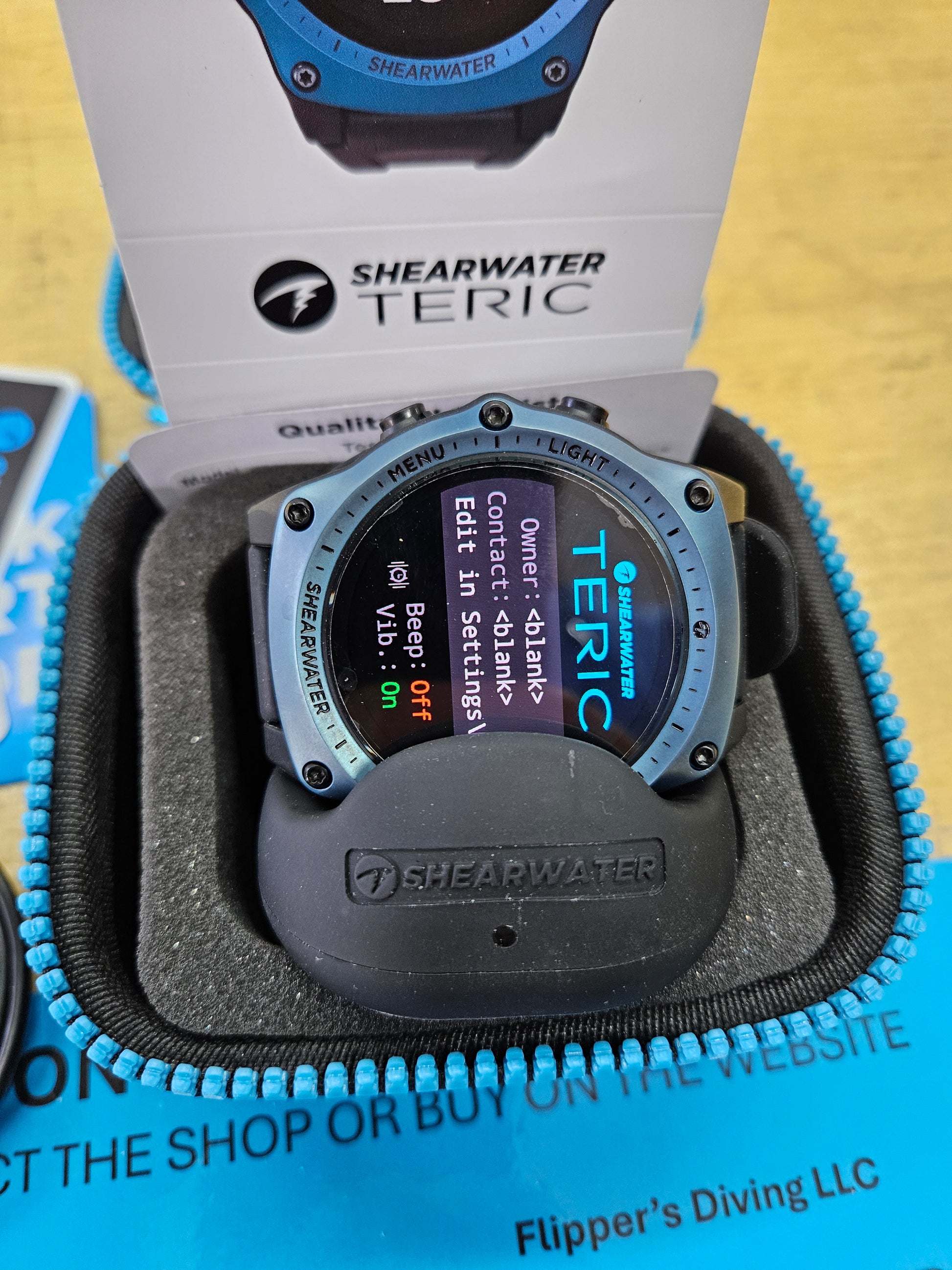 Shearwater Teric Dive Computer... like new condition! It's only got 12 dives on it! Blue bezel and comes with all original accessories and case. Owner realized he was old and can't read the thing... so he moved over to a Perdix 2. Originally manufactured 10/2023, it will still have warranty coverage until 10/2025. No transmitter included but I do have them available separately. Retails for close to $1200.
