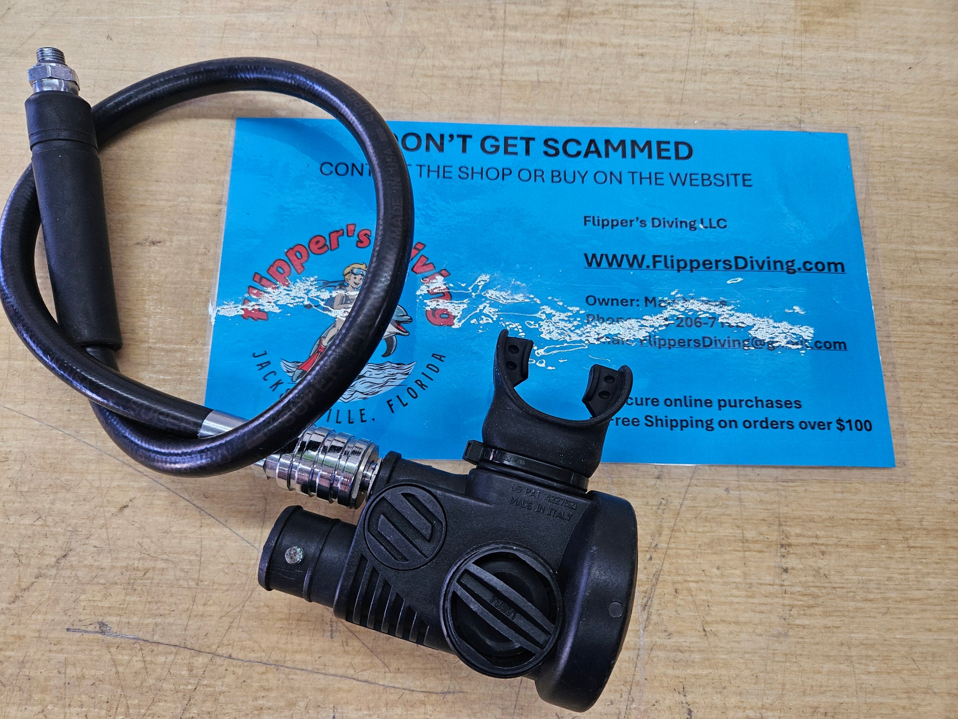 Tusa attached air source/BCD power inflator combo. Similar to a Scubapro AIR 2, Zeagle Octo Z or Atomic SS1. This combines your BCD inflator with your alternate 2nd stage regulator. This unit has been inspected tested and tuned... ready to add to the BCD of your choice. This has a 1" diameter outlet and will need to match your existing inflation corrugated hose. Specialized LP inflator hose included (pictured).