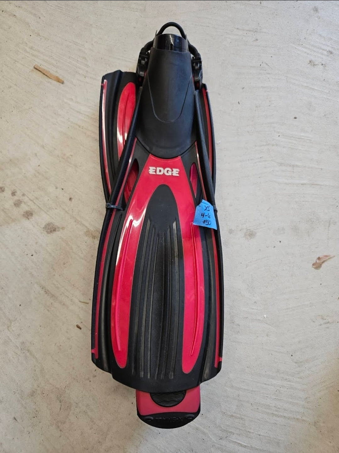 New old stock, Edge Flex Extra Small Fins (Men's 4-6) with bungie/silicone heel straps.