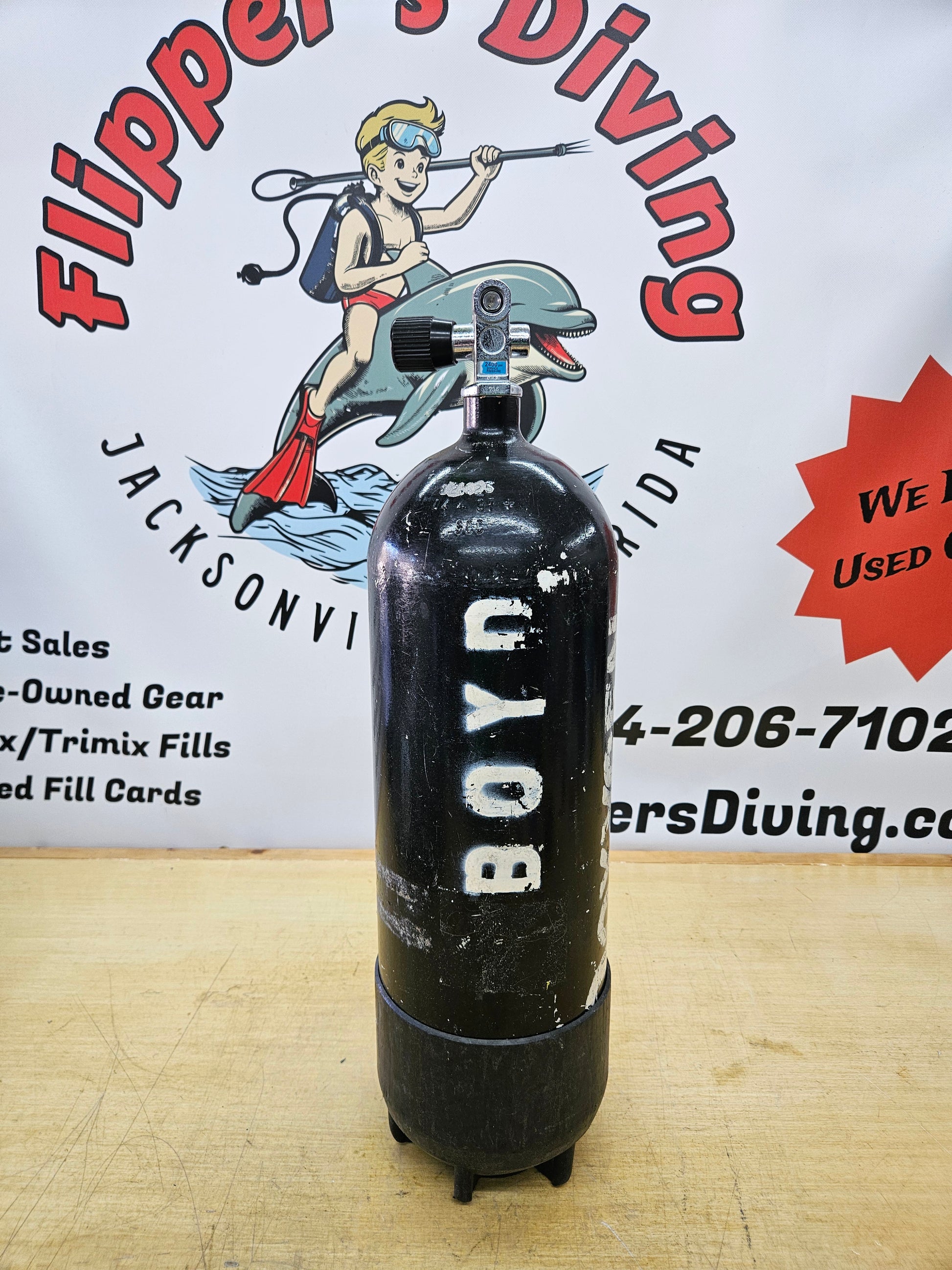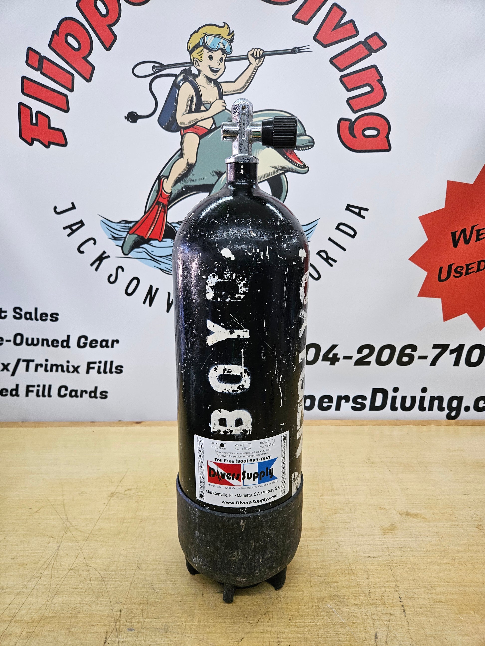 Faber LP80 steel scuba cylinder. Born 04/1991 and had it's first hydro since manufacture 12/2025. Fresh hydro and VIP and she is ready to dive! Service pressure 2400psi. Comes with Thermo standard K valve and tank boot. 7.25" diameter cylinder... same as an LP85 just several inches shorter. Find a mate for this one and you've got a killer set of sidemount tanks. Free nitrox fill or air fill if picking up locally in Jacksonville, FL or shipping available. Cylinder will be shipped empty, valve removed and plugged. Your LDS may require a fresh VIP prior to filling if you opt to have it shipped.