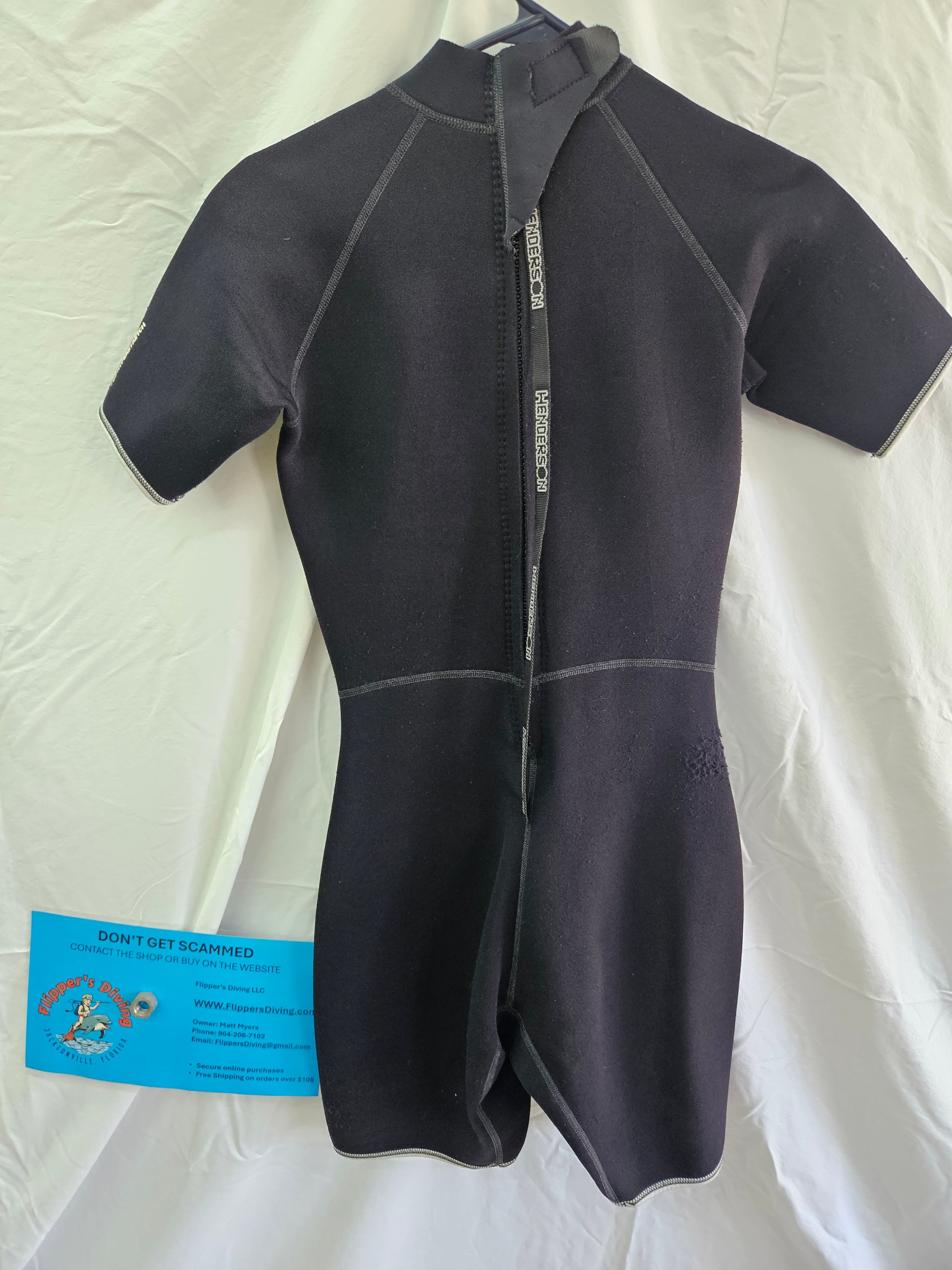 Henderson 3mm Shorty Wetsuit (Size 6), good condition, some scuffed fabric on the hips... see photo.