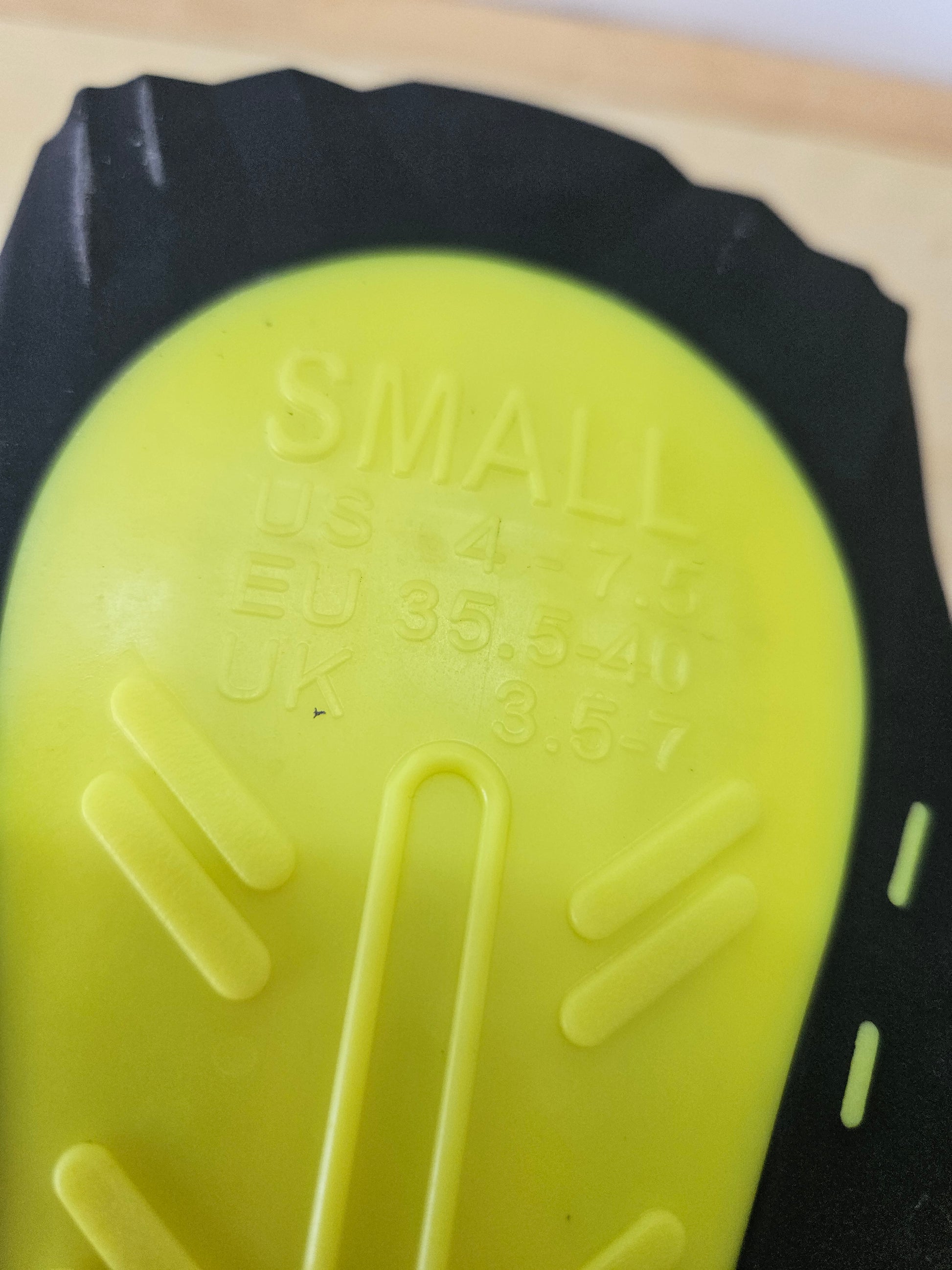 Used ONCE! demo set of fins... HOG velocity pro. Nice rigid fin with a ton of propulsion! Silicone bungie/spring straps. Perfect all around fin. size small - men's 4-7.5.