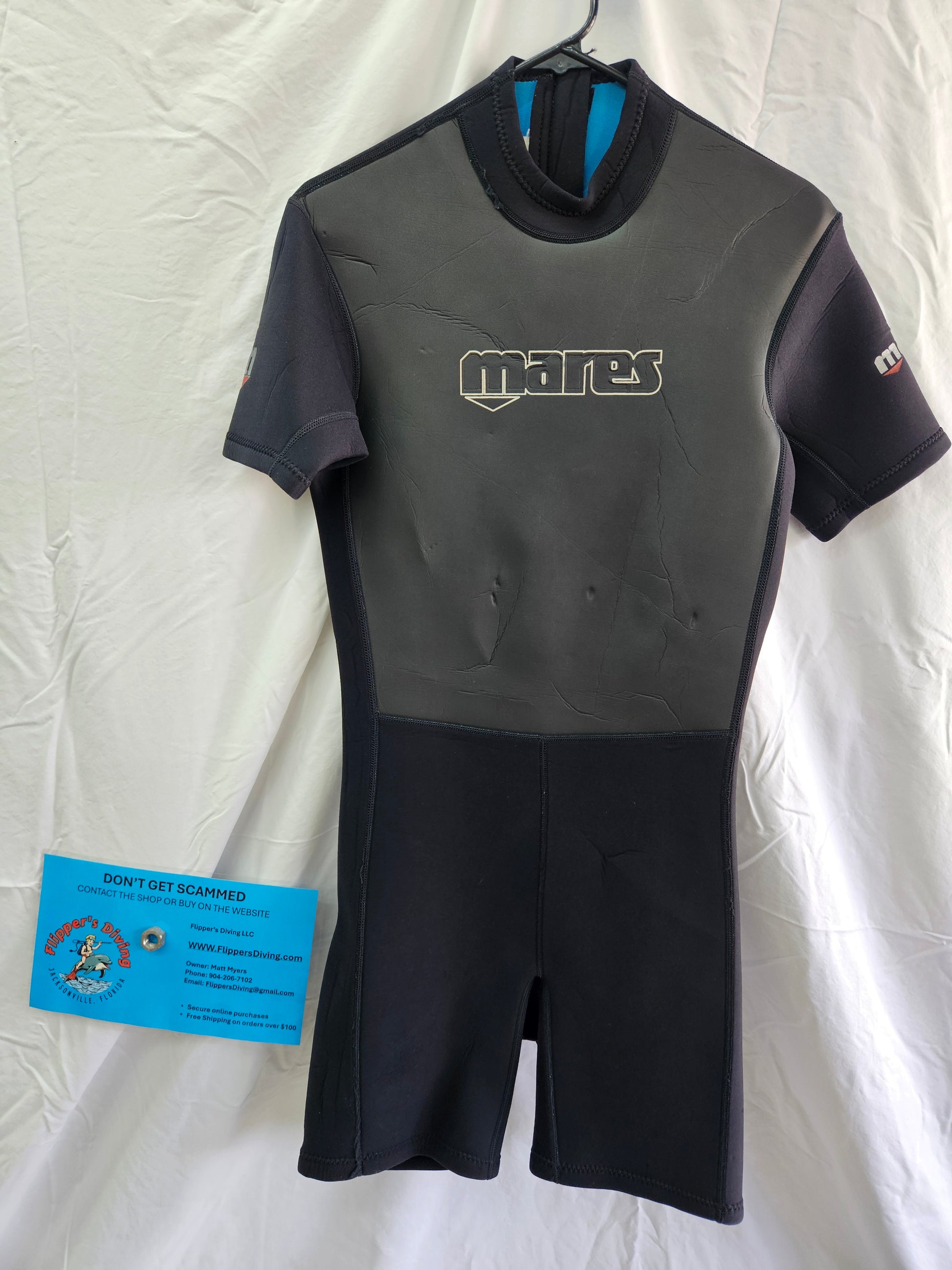 Mares shorty wetsuit. No rips, some fading and wrinkles, zipper in good condition. size medium.