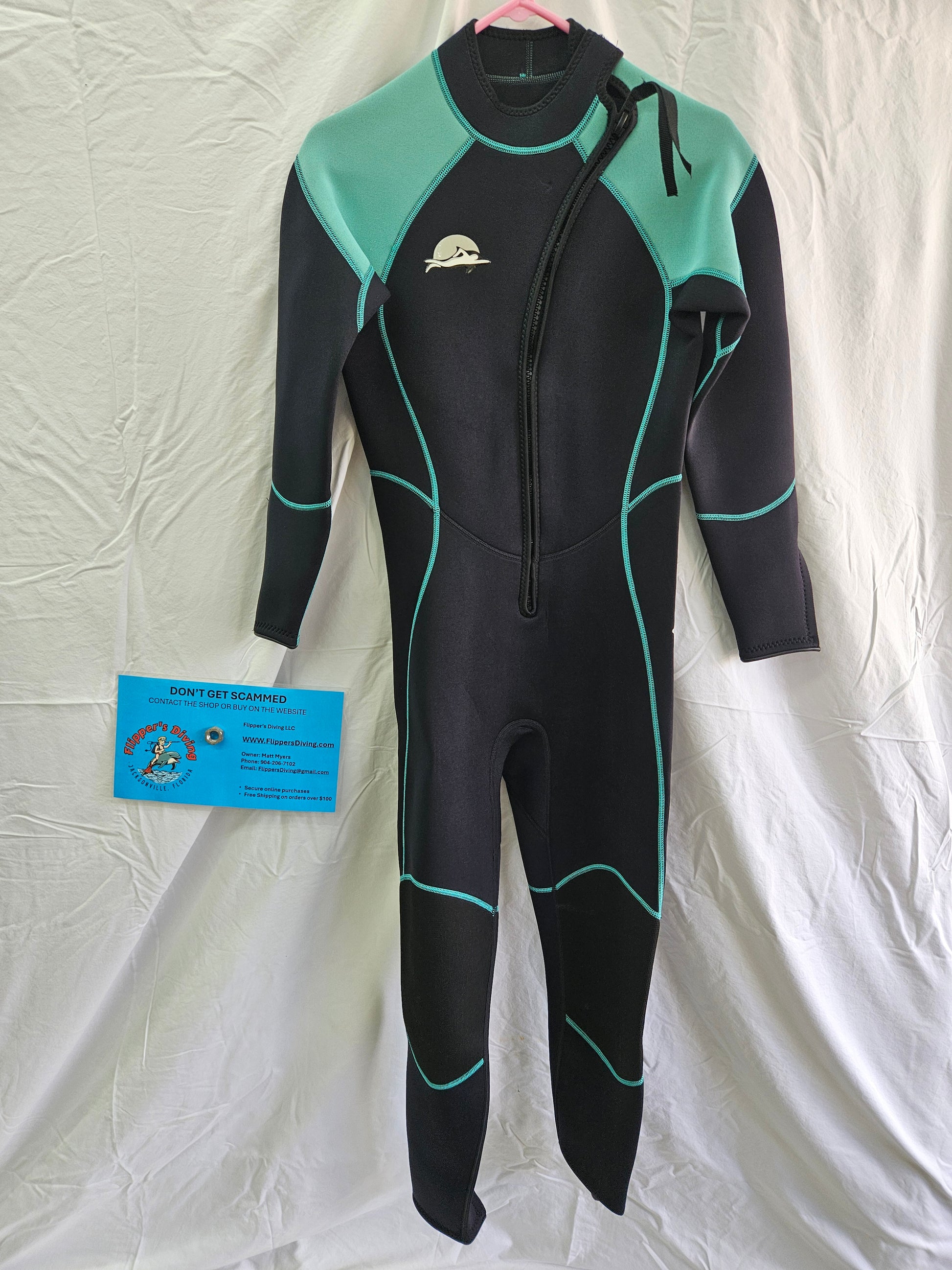 Like new! Neoskin 3mm wetsuit, front zip entry (not as common) and zippered ankles and wrists. Literally looks as though it's never been worn (and likely hasn't). Size men's medium.