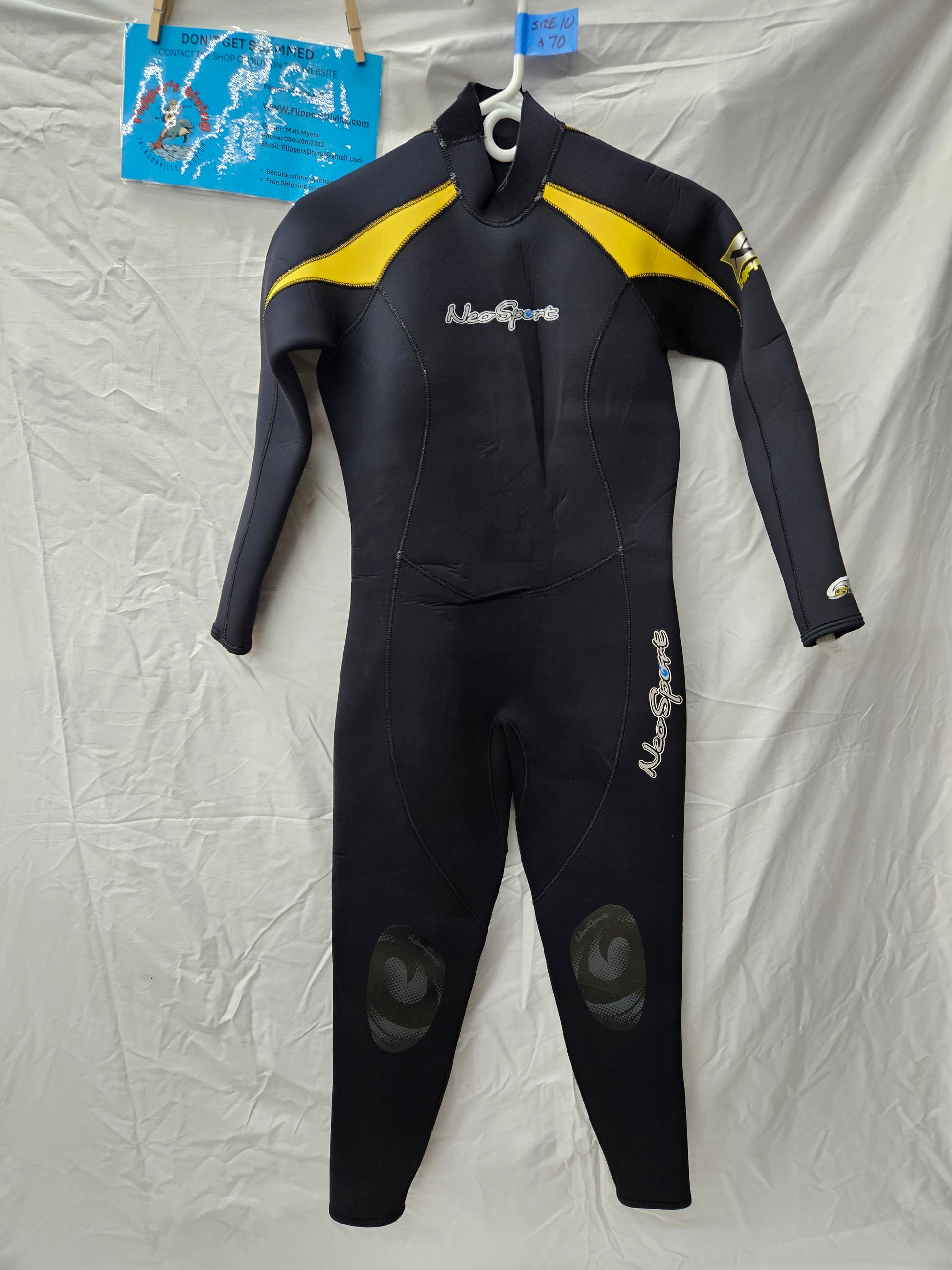 Women's size 10 Neosport 5mm full wetsuit. Overall very good condition... no rips/tears or excessive wear. These usually retail around $150-175.