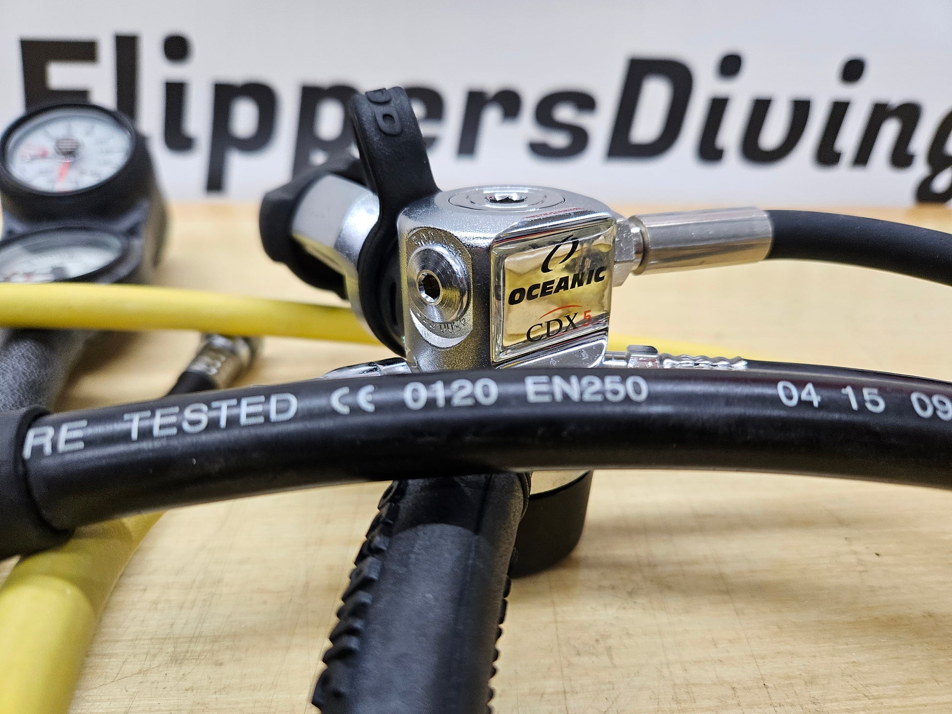 Excellent condition! Oceanic CDX5 balanced first stage regulator paired with the Oceanic GT3 balanced/adjustable 2nd stage, sea elite octo, LP inflator hose for standard power inflator and the compact 3 gauge console with SPG, depth and compass. Regulators are in extremely good condition and they've been inspected, tuned and tested... ready to dive!
