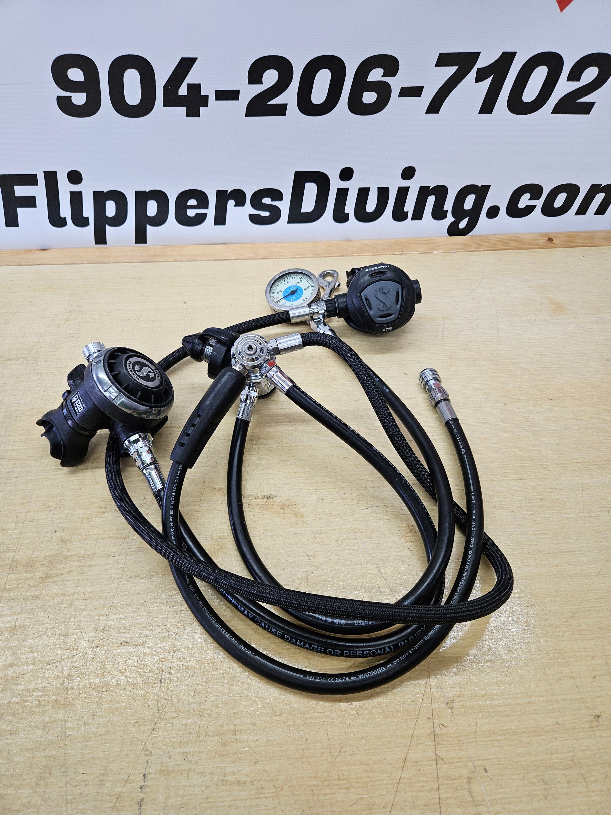 Excellent condition! Scubapro MK19EVO DIN first stage regulator, G260 primary 2nd stage regulator and R295 octo 2nd stage regulator. Comes with LP inflator hose for your BCD and a Halcyon 2" brass/glass SPG. Regulators were serviced summer 2025 and are in excellent operating condition. They have just been inspected, tuned and tested and are ready to dive! This set retails for double the asking price.