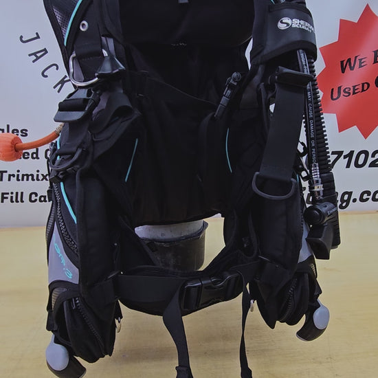 Used but in like new condition! Sherwood Luna BCD. Jacket style BCD with ample storage and clip off points. Large zippered storage pockets on each side, multiple d-rings and equipment attachment points, fully weight integrated with quick release pockets and trim weight pockets, 2 cam bands, pull dumps on both shoulders and lower hip and standard LP power inflator. This BCD has been leak tested and inspected... its' ready to dive! size Medium.