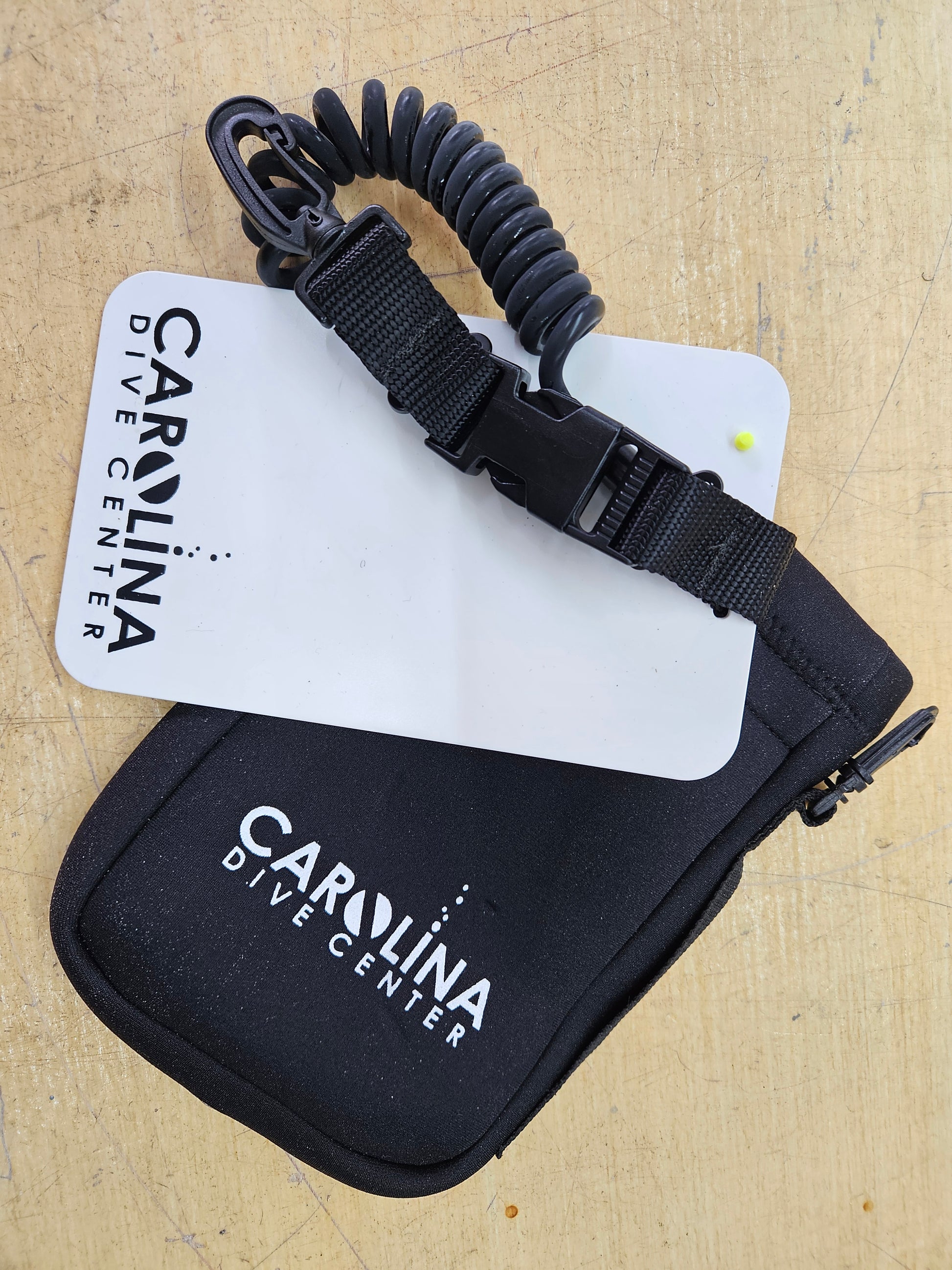 Carolina Dive Center diver's slate and storage pouch. Slate fits in the pouch easily with plenty of room to spare.