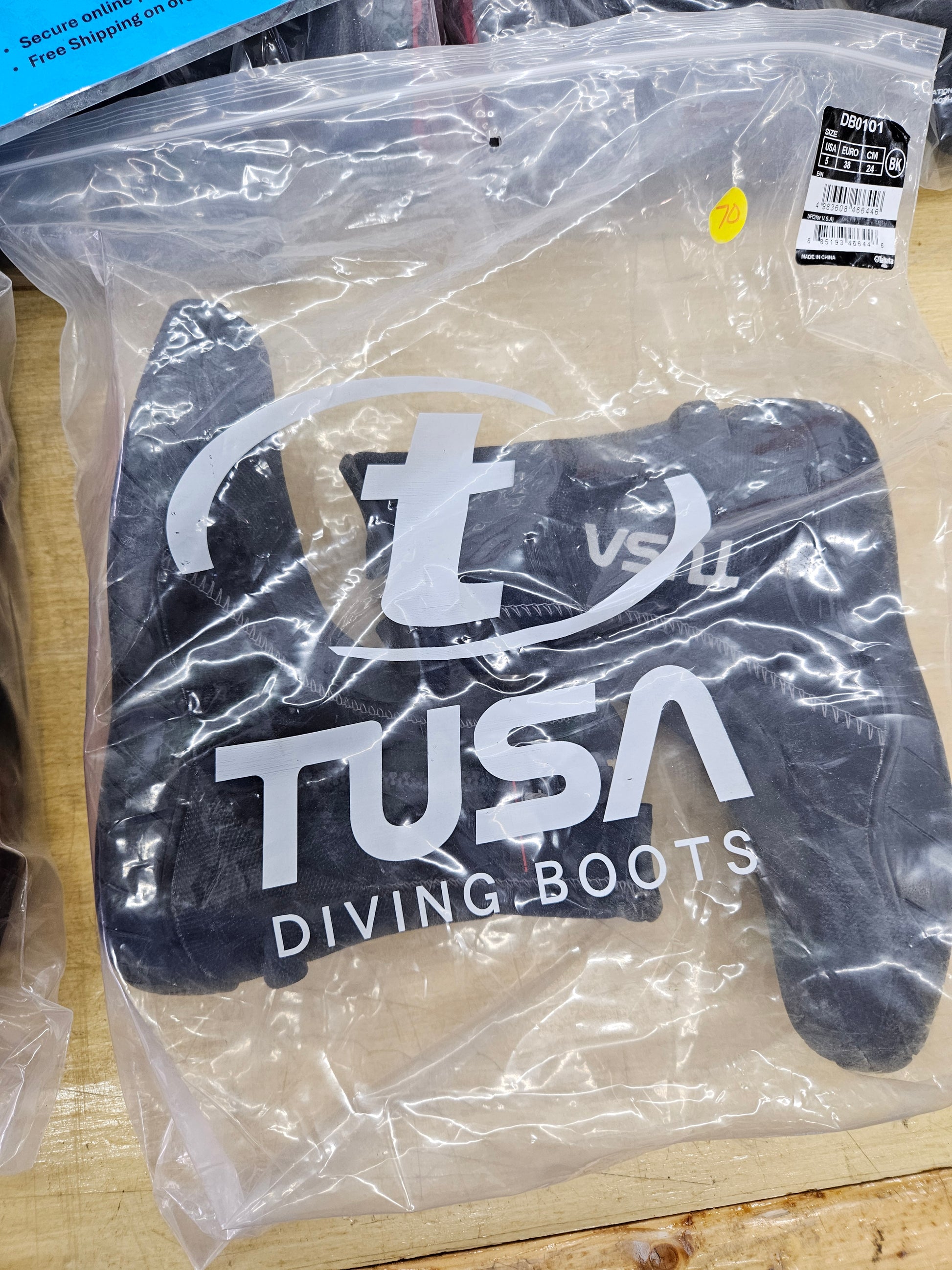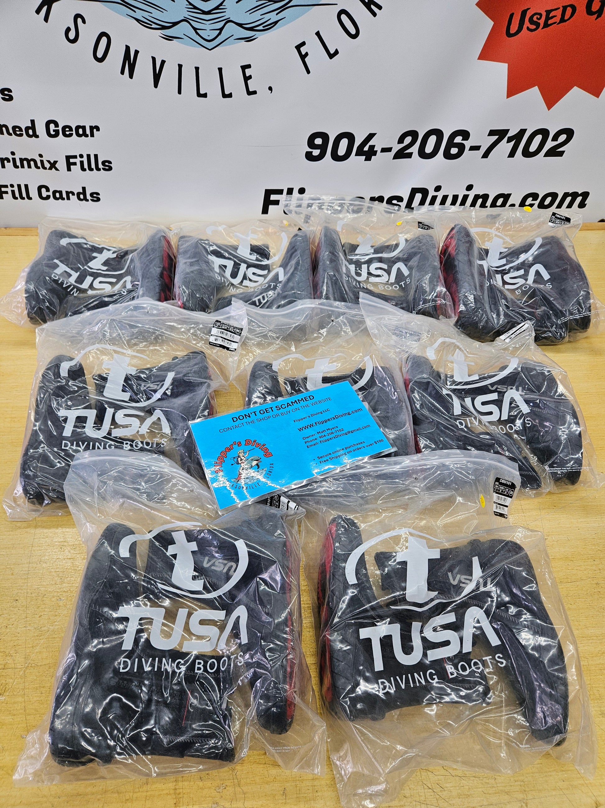 New, old stock... Tusa dive boots. These are the heavy duty 6mm boots with hard sole. These are retailing new for over $80 in most dive shops. I have limited sizes/inventory remaining, please visit my website for remaining sizes. At the time of this post I have: