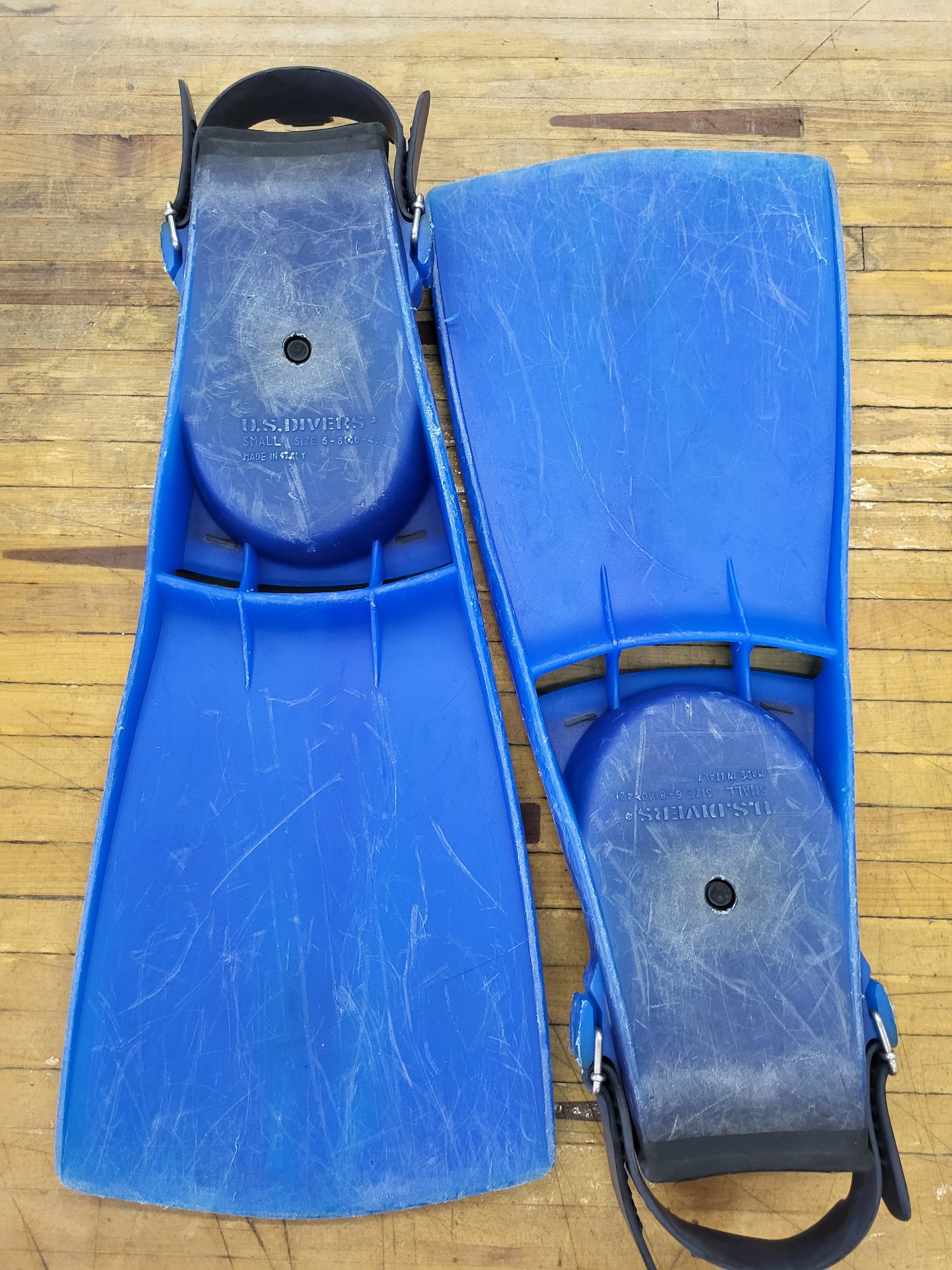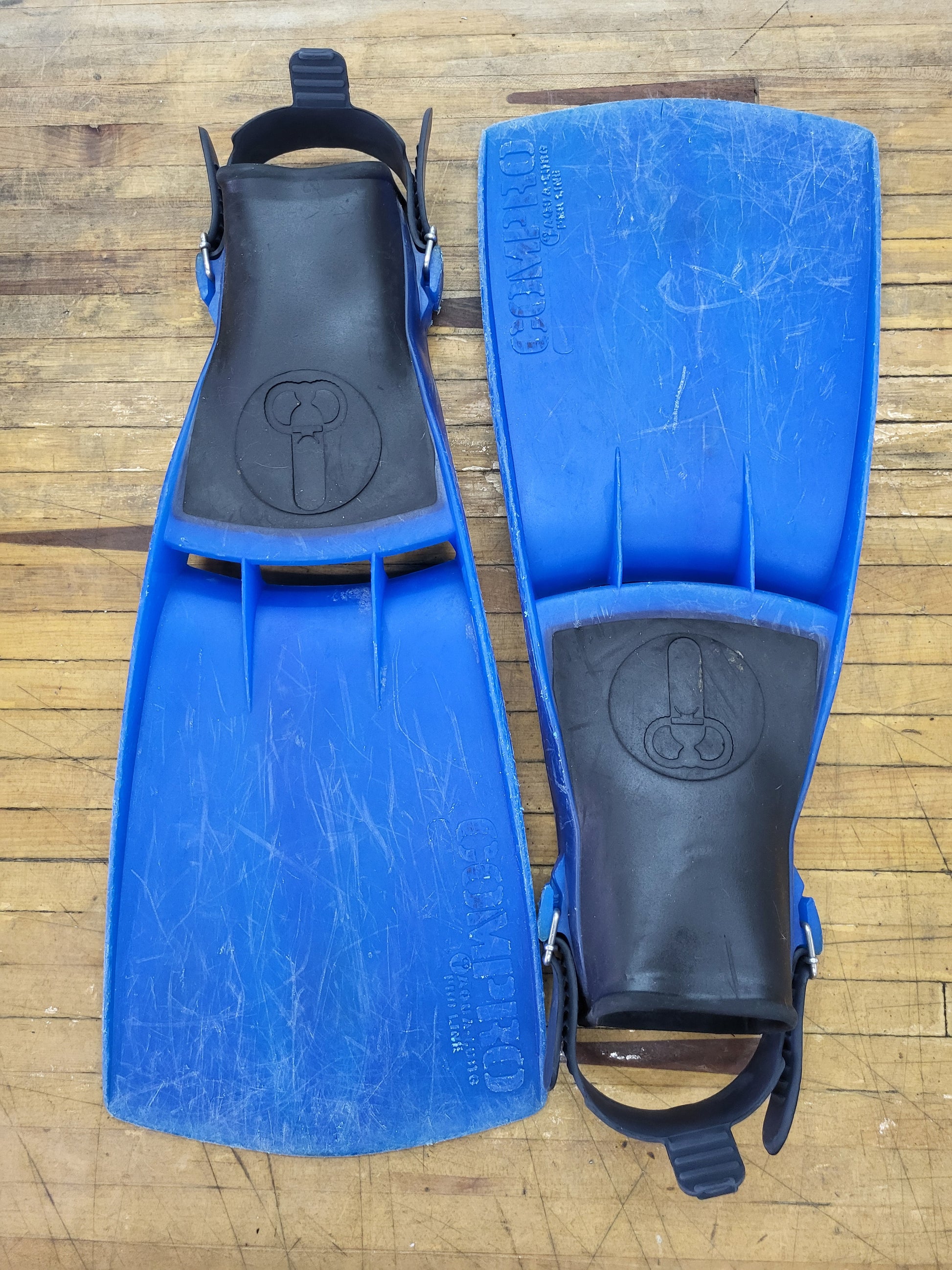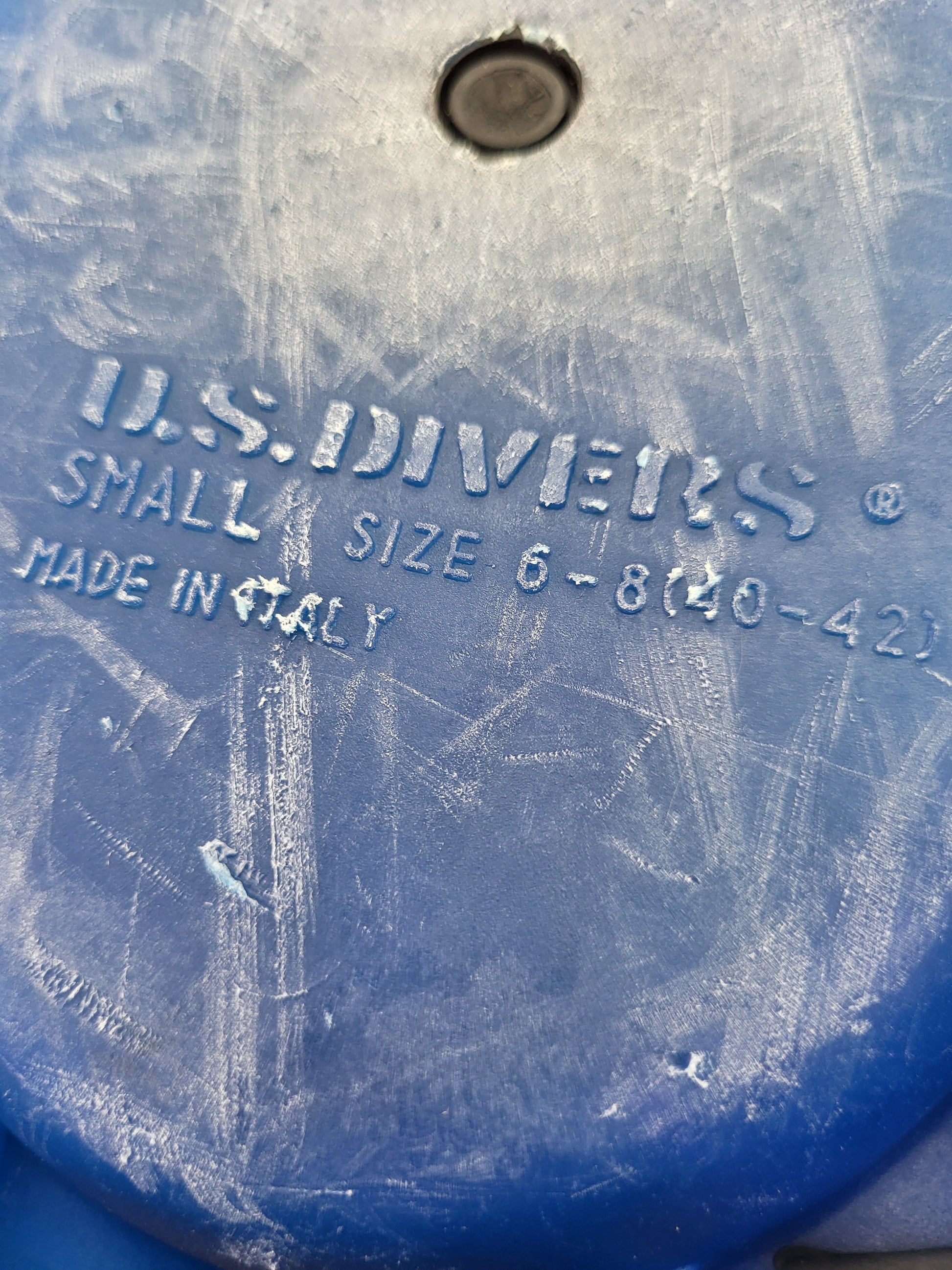 US Divers Comp pro dive fins, open heel design with adjustable heel straps. size 6-8 mens.