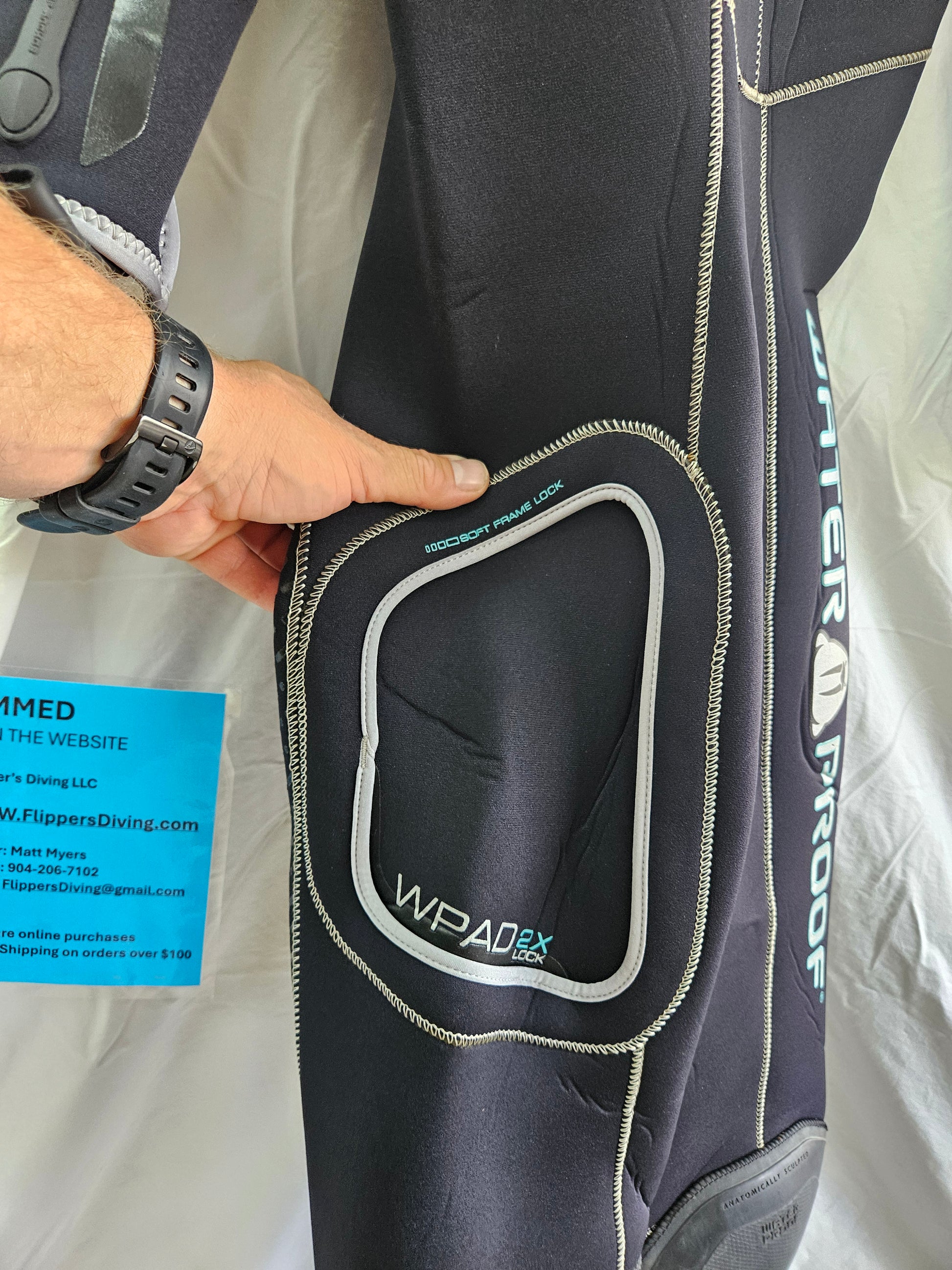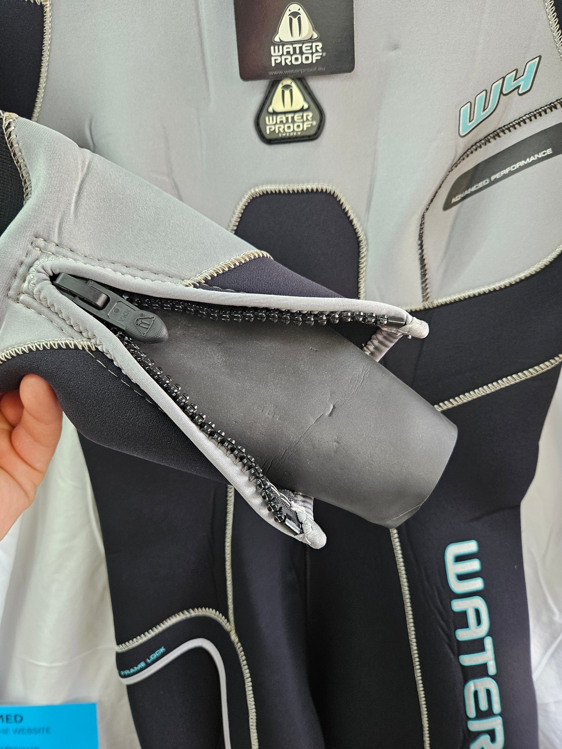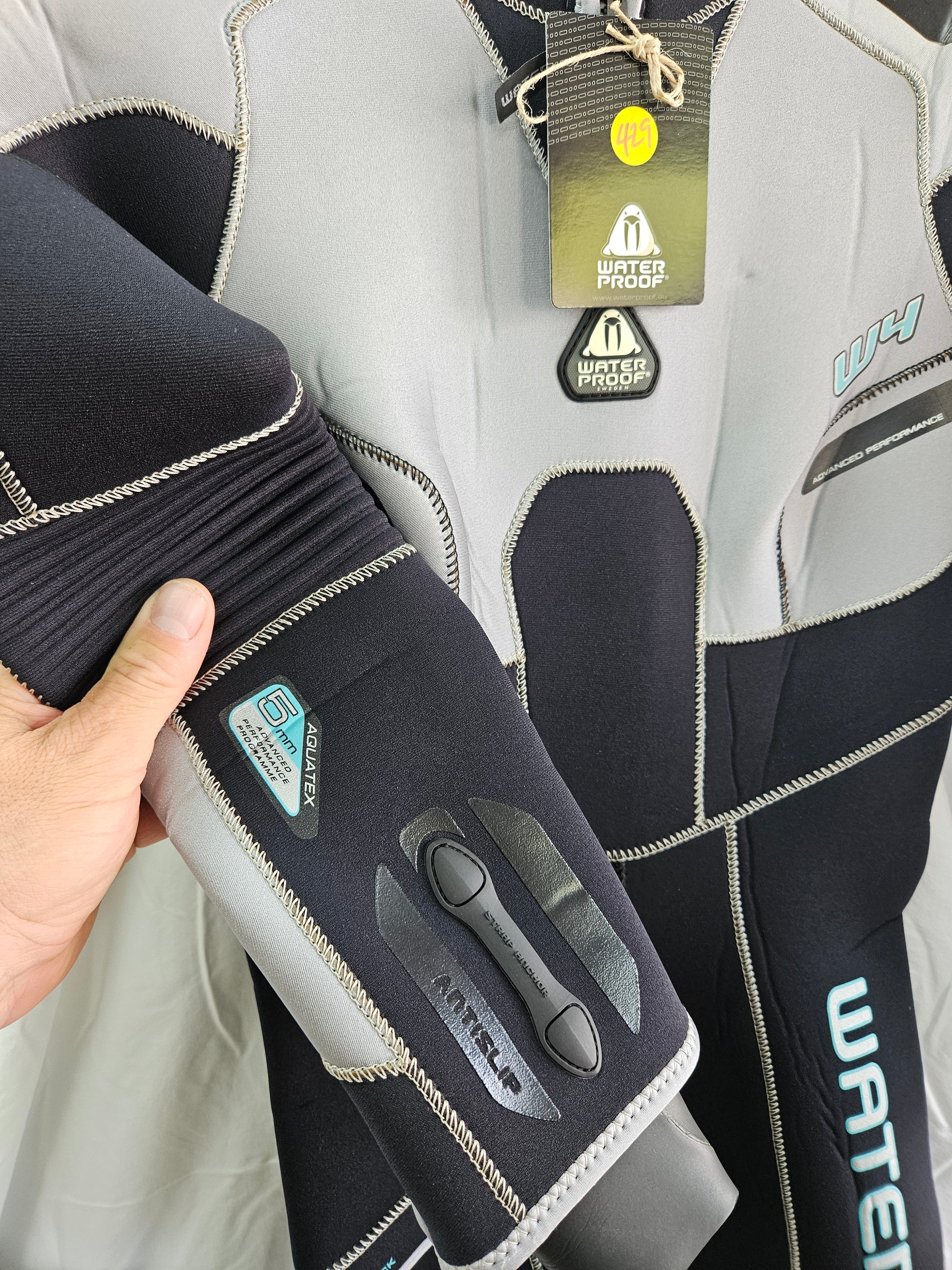 Waterproof W4 5mm wetsuit... new old stock! with the tags! Retails for over $400. Zippered ankles, wrists and neck line. Add on panel for the Waterproof thigh pocket (not included). Super warm and well built suit. Please reference the size chart image to see if this is your size. Ladies Medium.