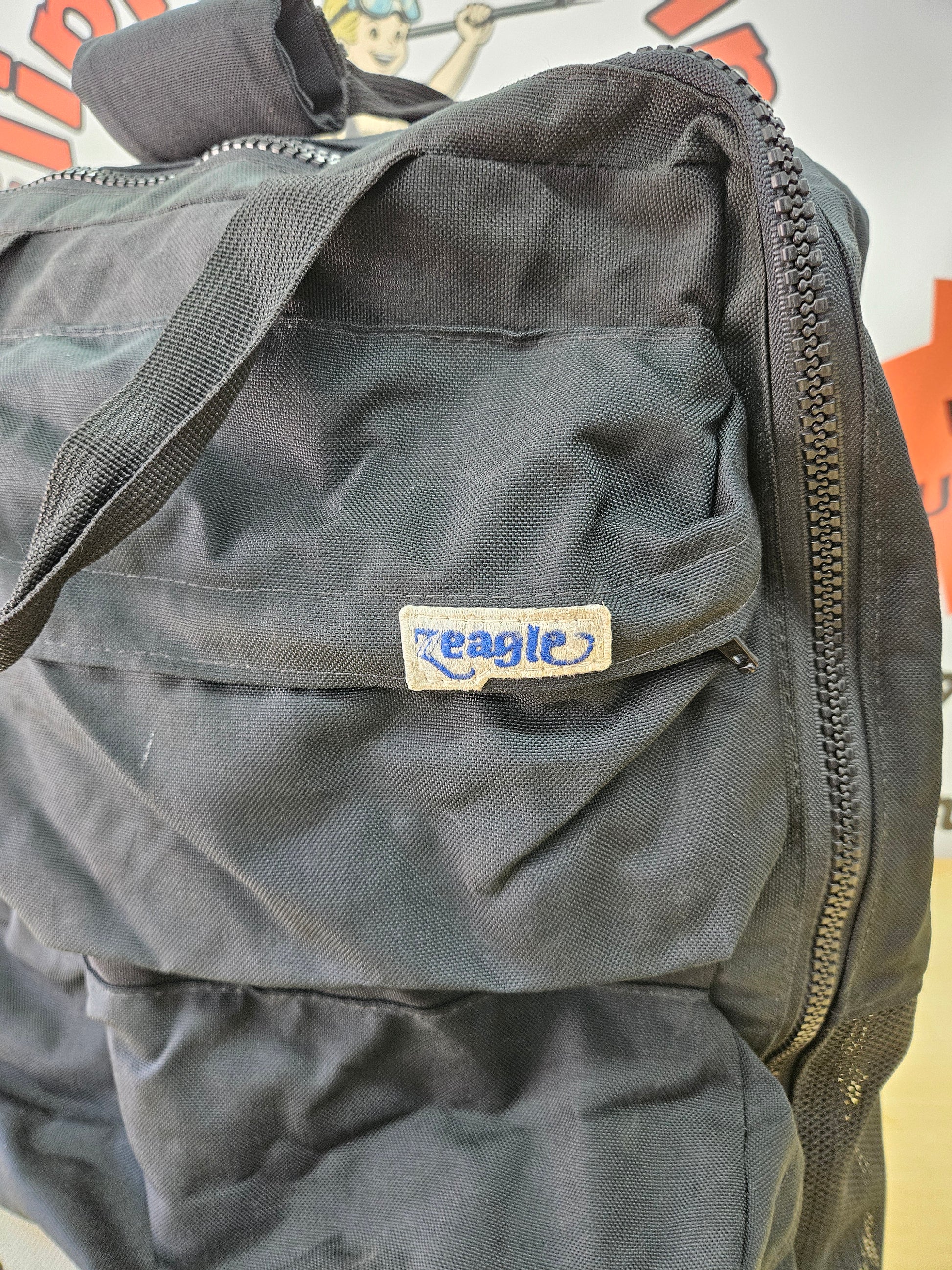 Old School Zeagle equipment bag... heavy duty but not heavy... good for airline travel. Backpack straps, heavy duty plastic zippers (all functioning properly). Large enough for a single diver's full kit.